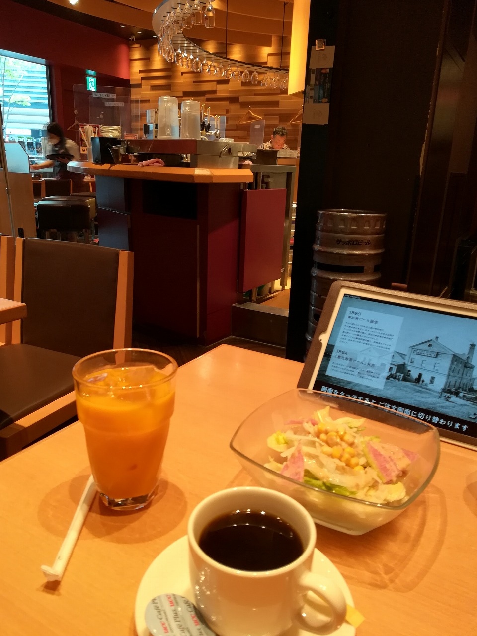 6月24日 土曜日に御茶ノ水の病院へ行った帰り、今回は御茶ノ水ソラシティにある「YEBISU BAR」でランチしてみました... 続きを読む。なんだか急に、デミグラスソースのオムライスが食べたくなっちゃったもんですからね。 いわゆるパブレストランな店内ですが、こじんまりでとっても居心地が良かったです。自分は夜にこういう店に来る機会がないのですが、昼間でもたまにこういうところに来てみるとけっこう気分が変わっていいものだなと思いました。昔にロンドンでランチしたパブの雰囲気に似ていてなつかしく思い出しました。 オーダーはテーブル上のタブレットでするところがとっても令和21世紀です。「クラシックオムライス」税込み990円とランチサラダ(220円)、マンゴージュース(440円)とコーヒー(200円)の4点で合計1,850円の豪華ランチでしたけど、いま顎関節症がつらくて耳のほうまで痛くなっちゃって大変な時期なので、そんな自分を少しでもいたわってあげようと贅沢しました。。 オムライスは期待を裏切らない美味しさ! 中のごはんもしっかりケチャップライスでグリーンピースたっぷりでしたし、デミグラスソースのお味もGoodです!ランチサラダがすごく大きなボウルで出てきたのにはびっくりしました。たいていはランチの付け合わせのサラダって、小さな白いお皿でちょこっとレタスとミニトマトかなんかがくっついてくるような感じじゃないですか。でもここのはお野菜た~っぷりで、ほんとにこのボリュームで200円??と、思わずメニューを見返してしまったくらいでした。 それと、マンゴージュース!いやーこれが濃厚でおいしかった!これもこのお味で400円は安い!私だったら600円はとるな、などなどと思いながら、久々に気分の上がった楽しいランチタイムでした♪(^o^) 最近はコストダウンにばかり目が向いて味を疎かにする店が増えてる気がして、外で何を食べても美味しくないなぁと感じる日々が続いてましたけど、久しぶりにしっかりきちんと誠実な仕事してるなと思わせてくれるお店に出会えてうれしかったです。さすがの恵比寿様ですよね。また来たいと思います。 ちなみに、すぐお隣にはタイ料理の「サイアムセラドン」がございまして、そちらも大人気のお店です。次回また来てみようと思います。この御茶ノ水ソラシティには他にも「エチオピアカリー」とか、神保町の古き良き味が楽しめるお店もあって、吹き抜けの明るい広場からはニコライ堂の屋根も見え、雰囲気もこじんまりだけど落ち着いていて、一言で言ってとてもいい感じの場所でございます。わたくしの秘密のアジトの一つなので。おしえたくなかったけどw ふふふ♪ 閉じる