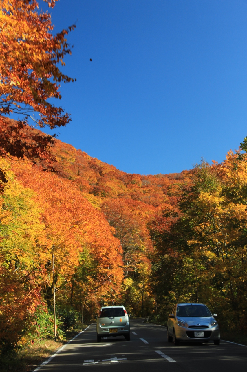 八甲田山麓は紅葉が非常に美しい道で、特に酸ヶ湯近辺と猿倉温泉近辺の紅葉の美しさは特筆ものです。