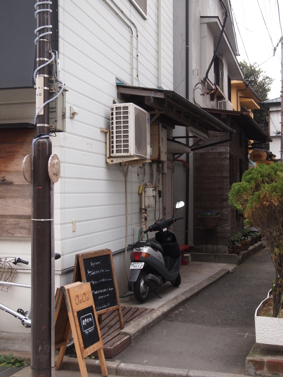 入口はその閉まってるパン屋さんを入り、細長い階段があるのでそれをのぼるとお店があります。