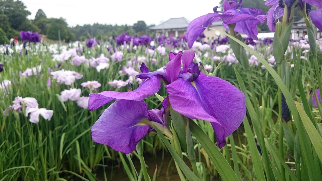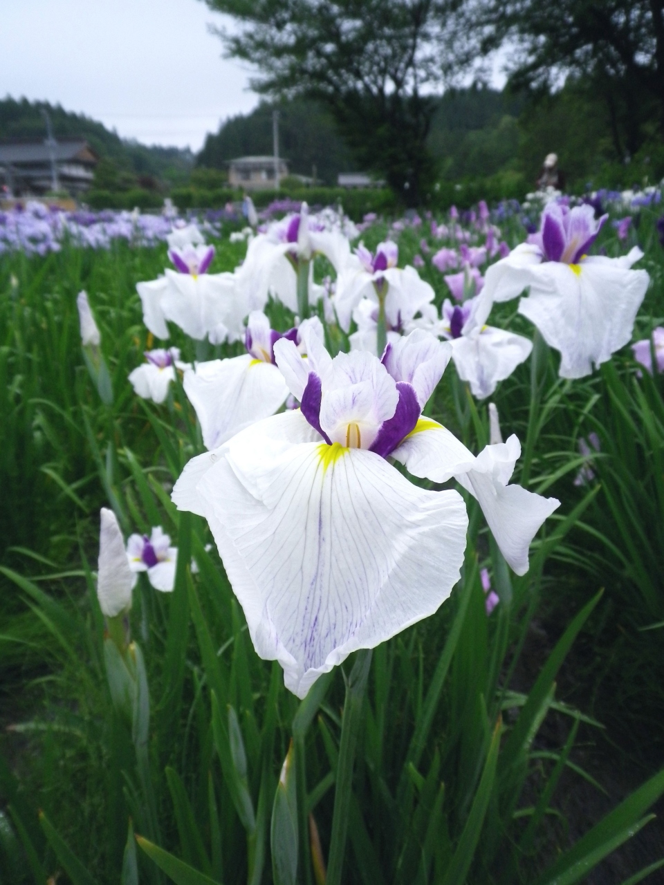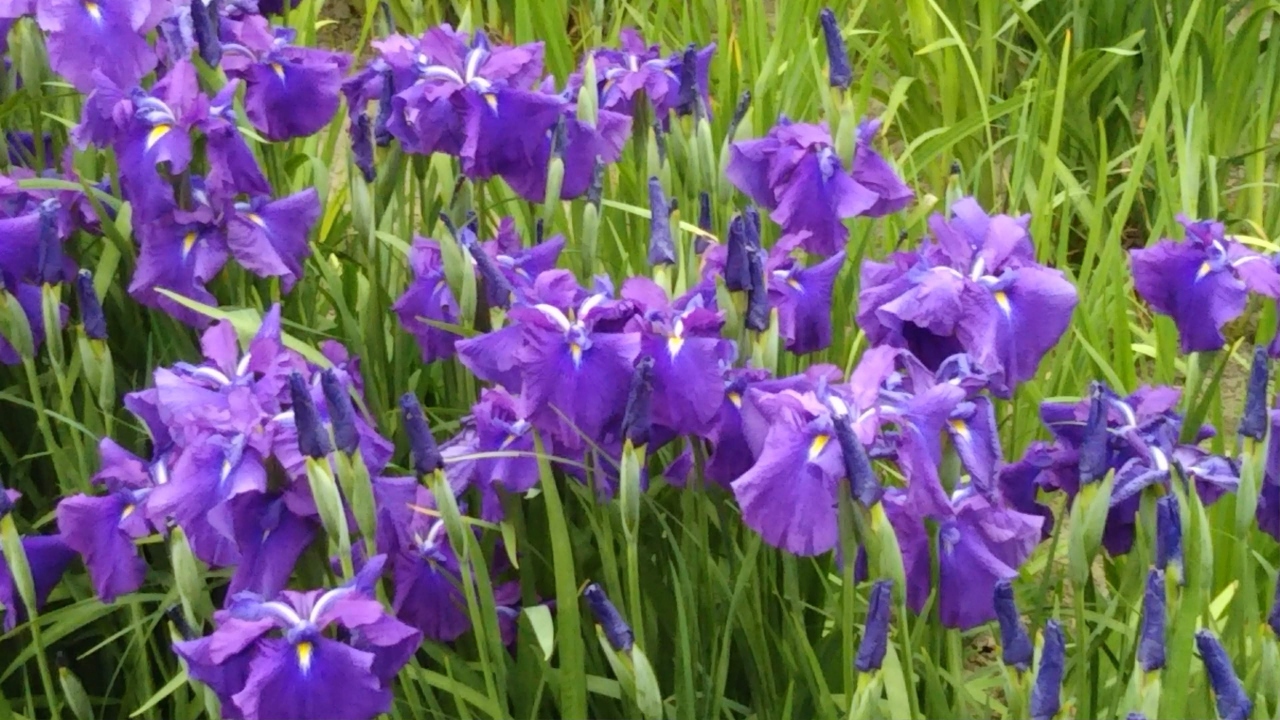 辺りを見回しても何処か分からず、犬のお散歩を... 続きを読むしている地元の方に場所を伺ったところ、花は5月から次々と咲き、もう終わって刈り取られた箇所もあるけれど、まつりの期間ではなくても、少しは花は見られる… とのことで、「あやめ園」に行ってみると、一部分ですが紫色や白のあやめが綺麗に咲いていました。