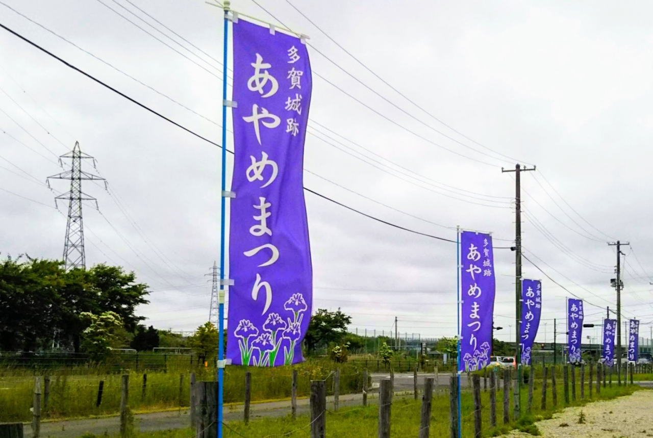 6月上旬、東北歴史博物館に行った帰りに「あやめまつり」の幟を見つけました。