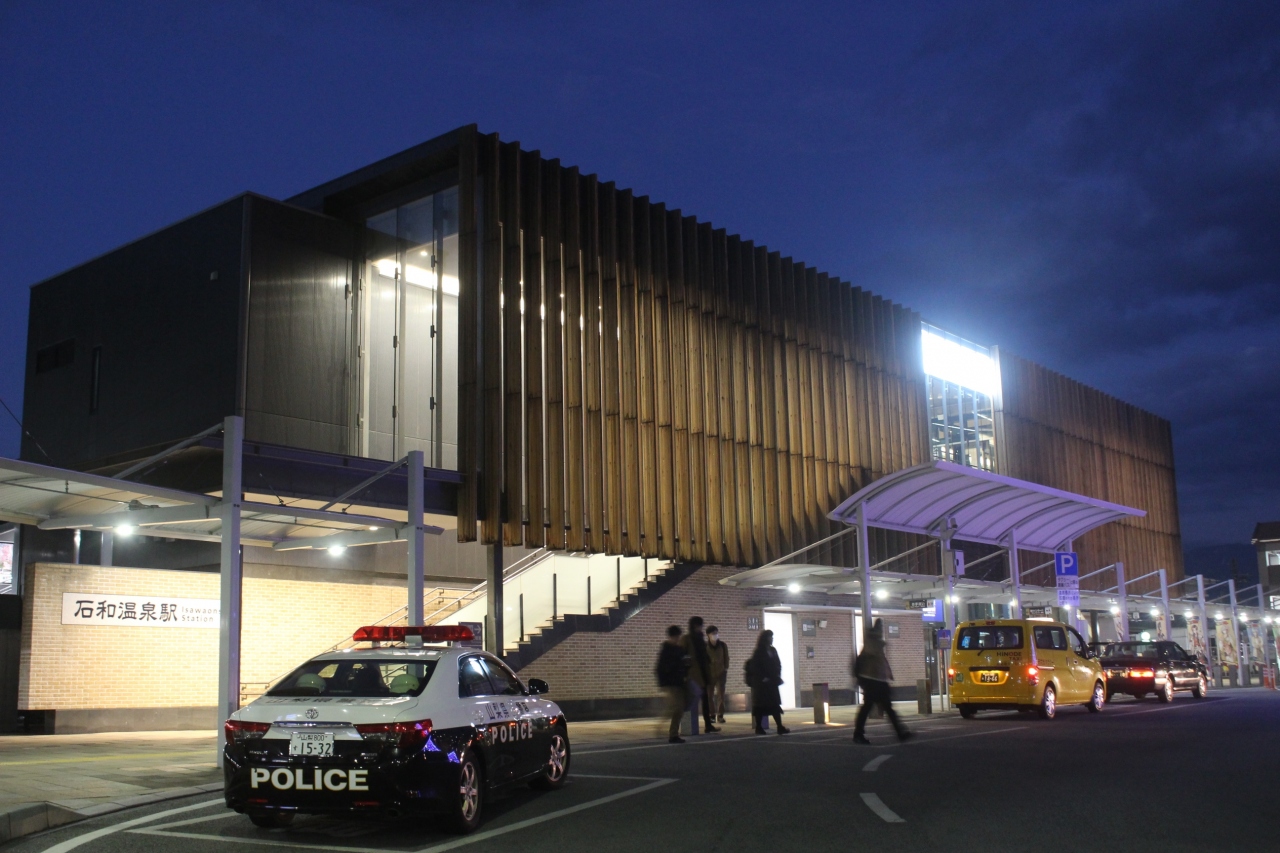 石和温泉駅前ロータリーにあります。