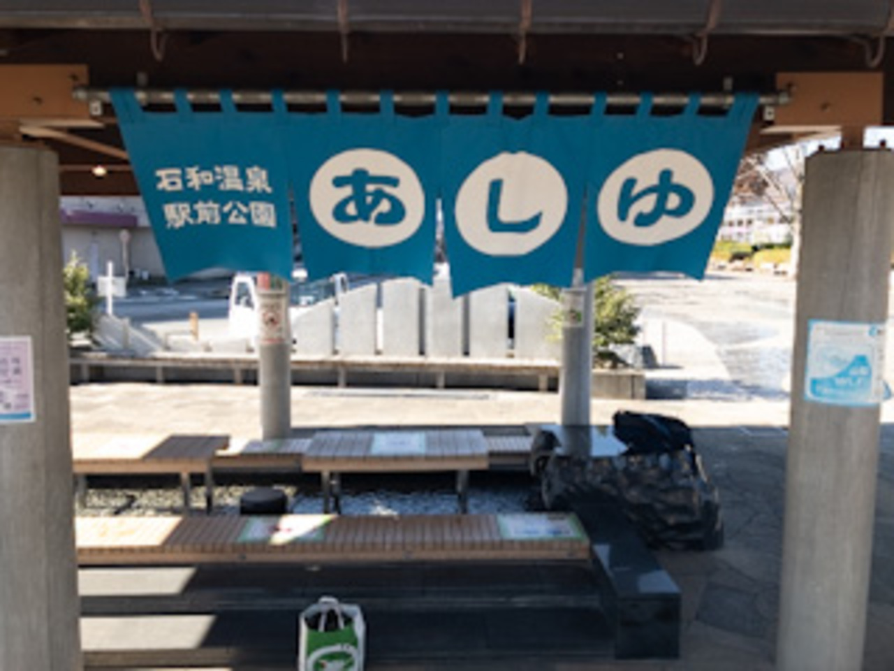 JR石和温泉駅前にあし湯がありました