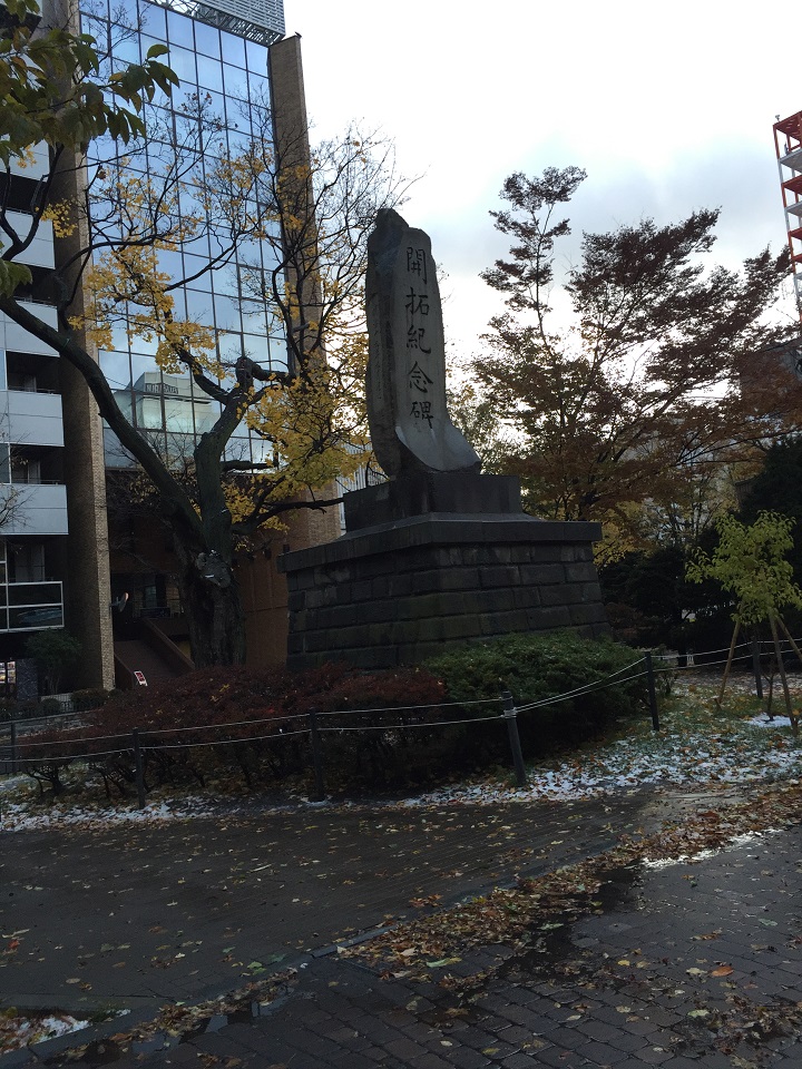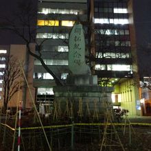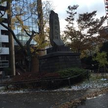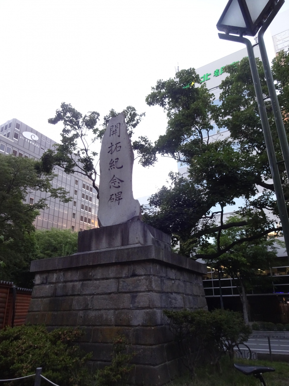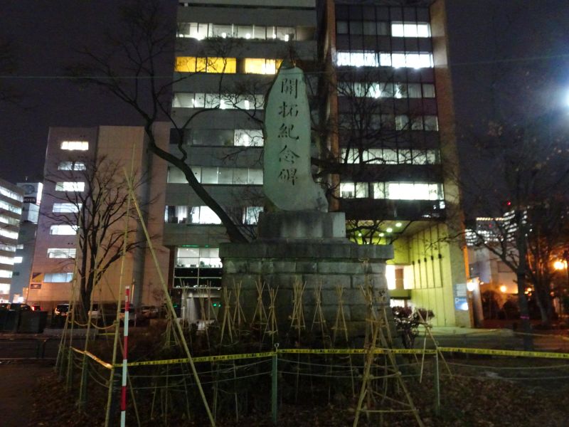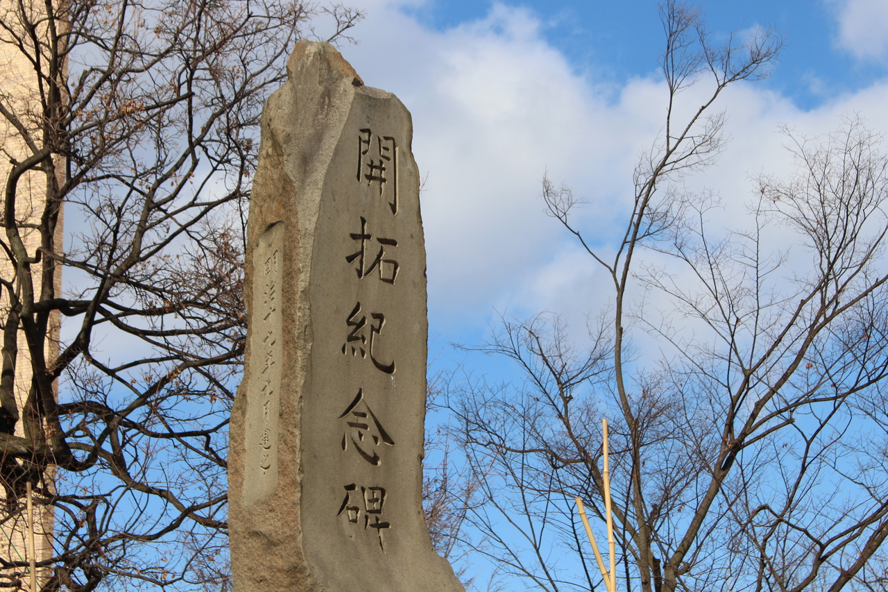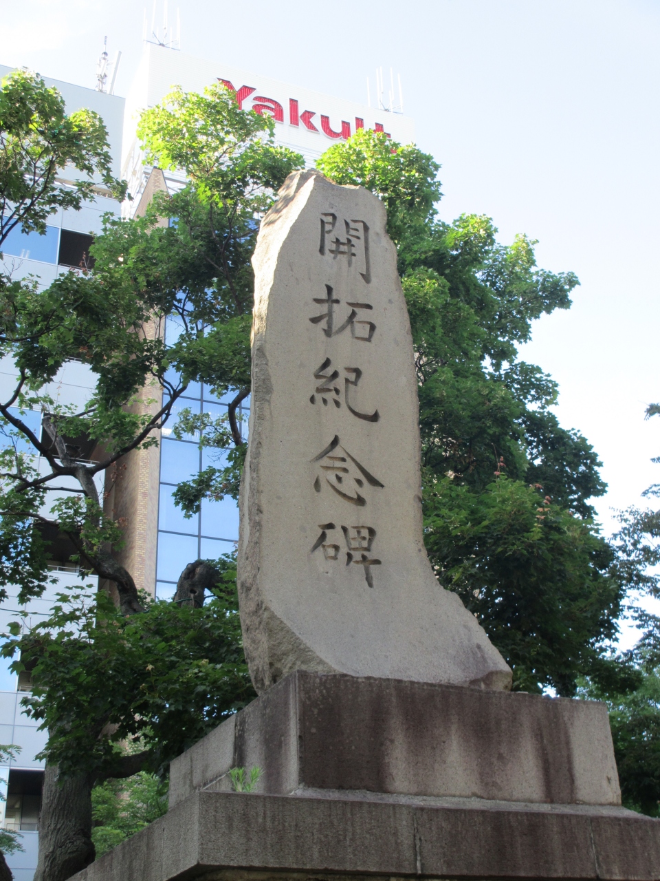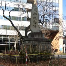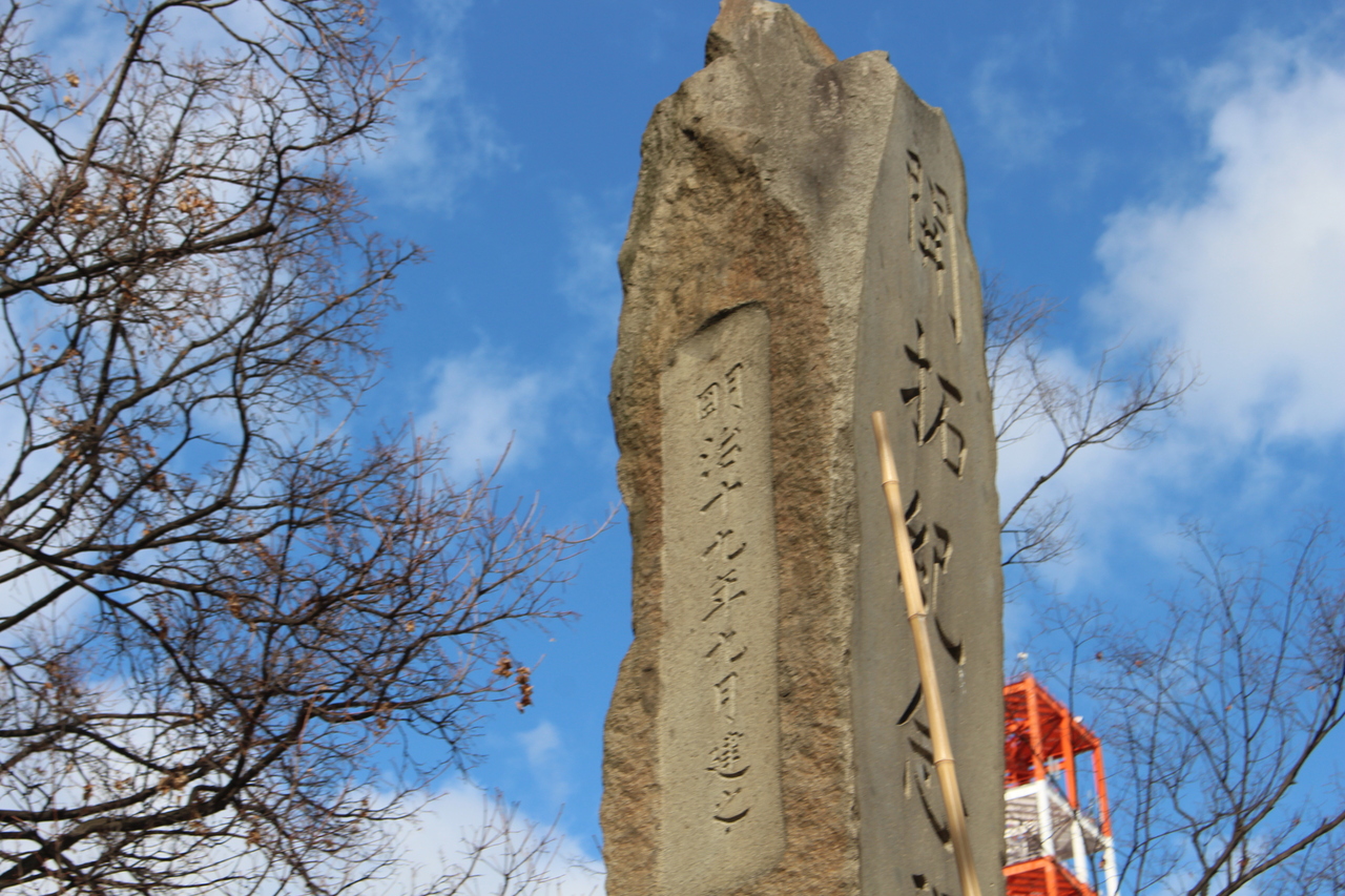 手前の自販機が邪魔。「紀念碑」という文字に注目