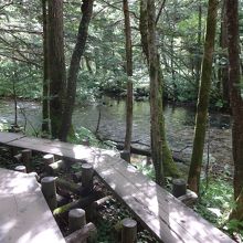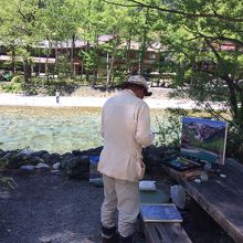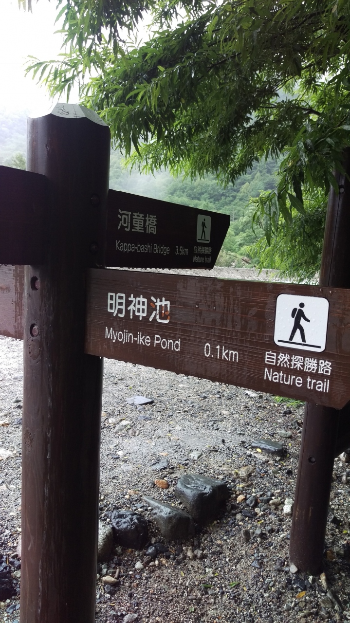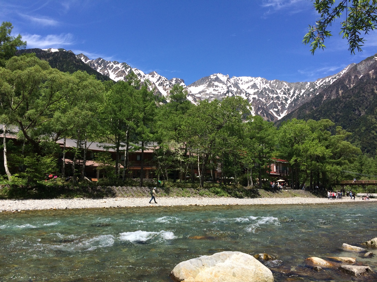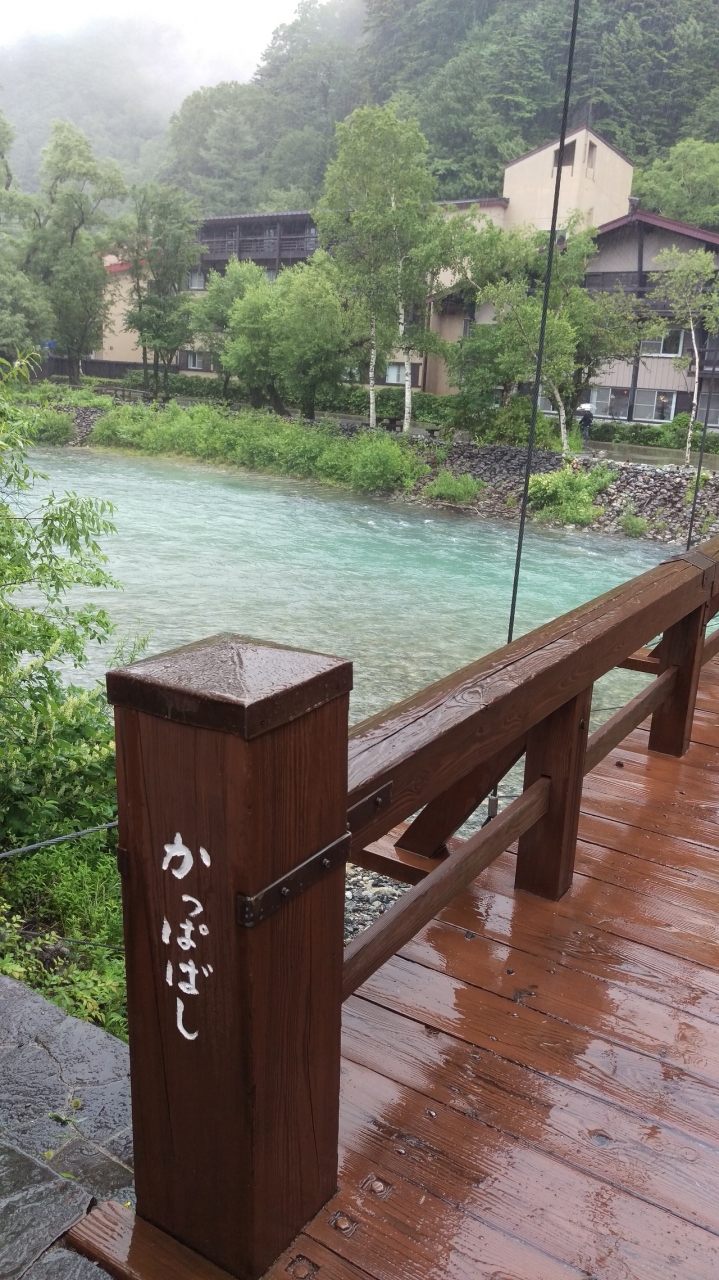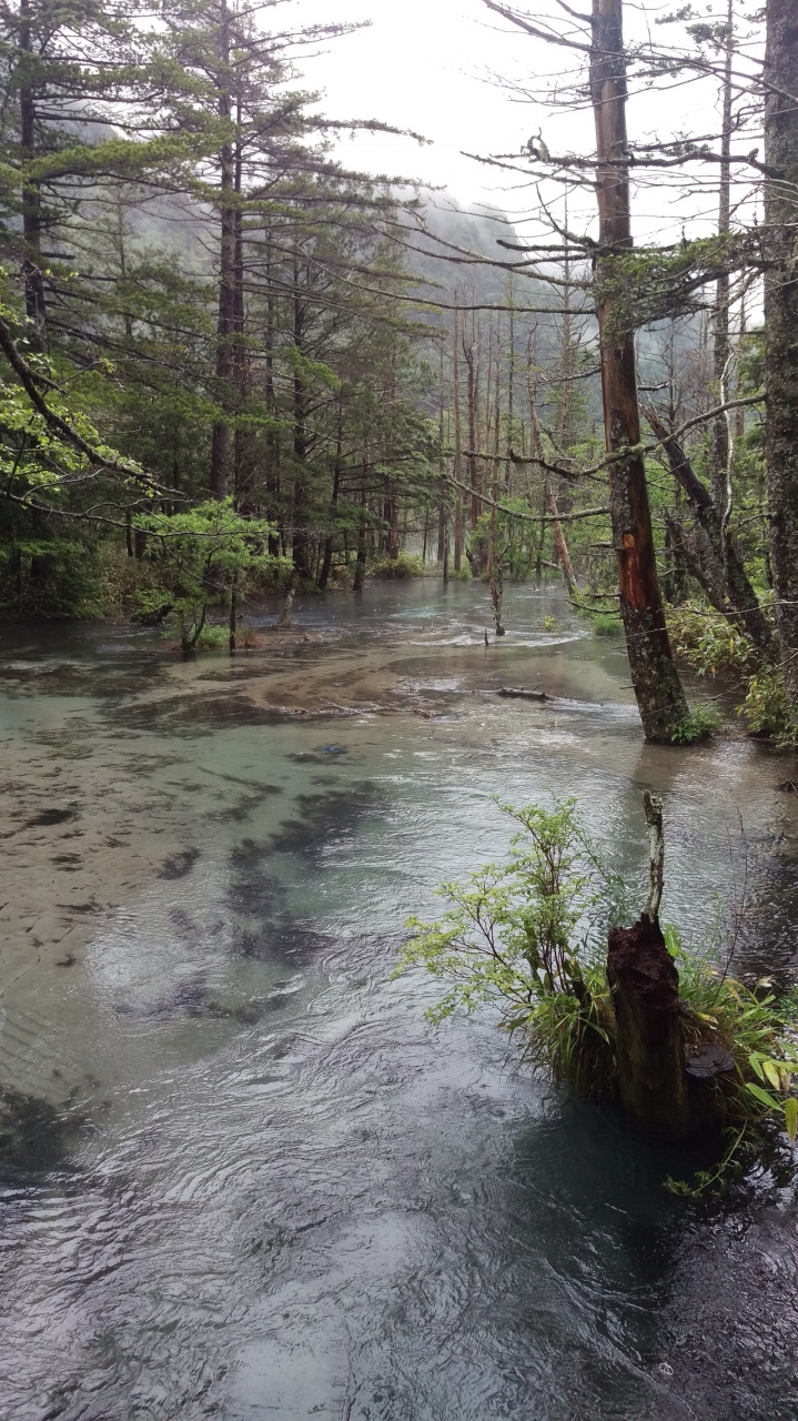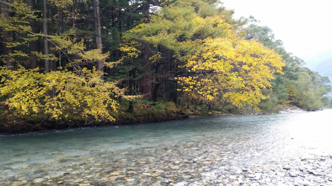 梓川の流れと、明神岳の一部(上は雲に覆われていた)