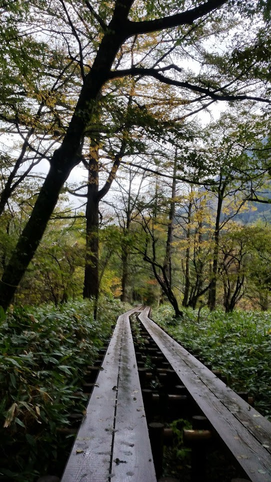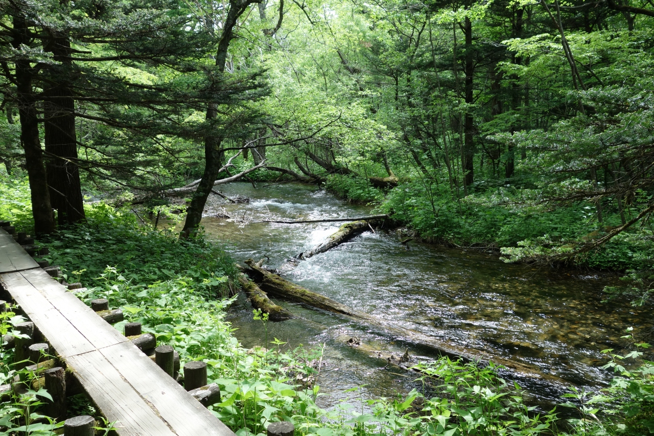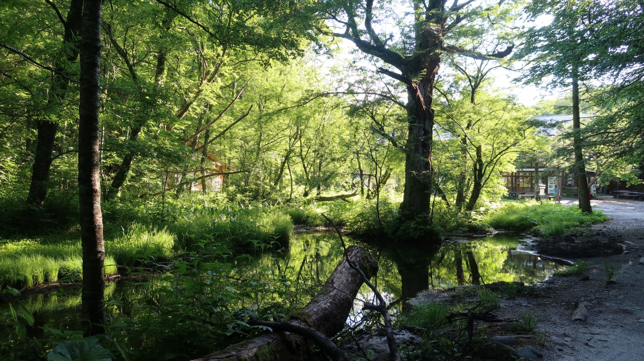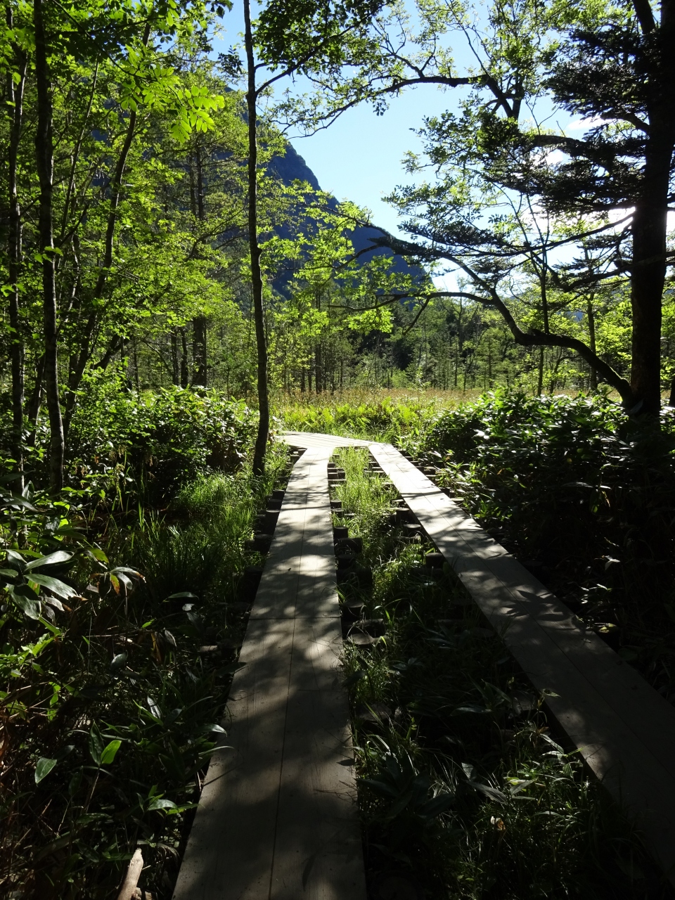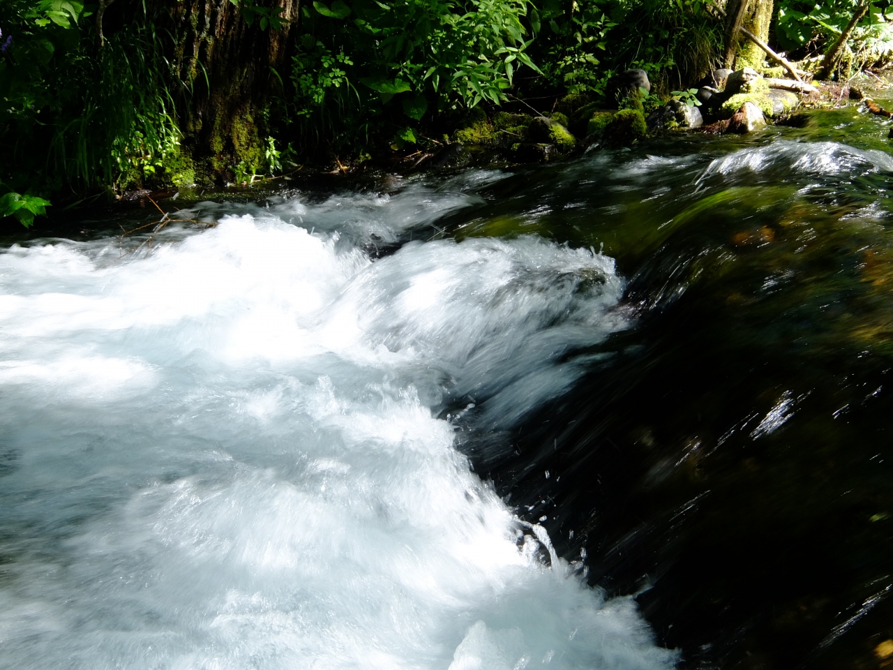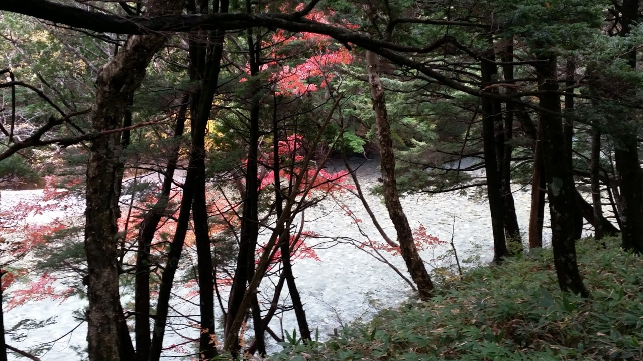 梓川の流れと、明神岳の一部(上は雲に覆われていた)