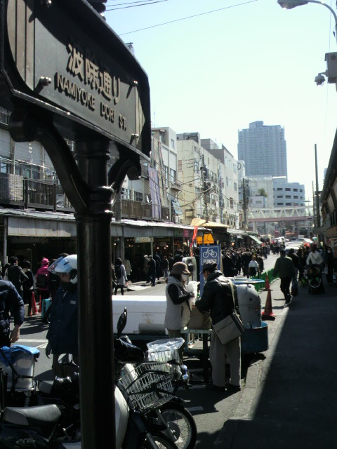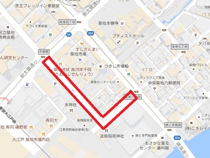築地場外市場から波除神社の方向に向かっている波除通りです。