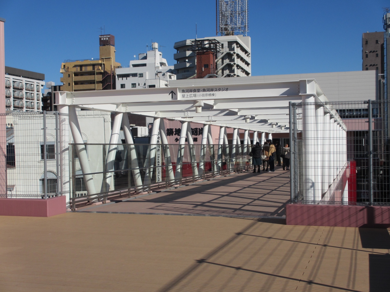 築地市場の東側を、新大橋通りから晴海通りに通ずる波除通りです