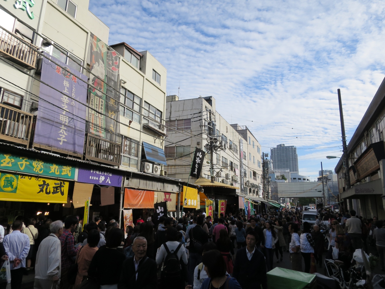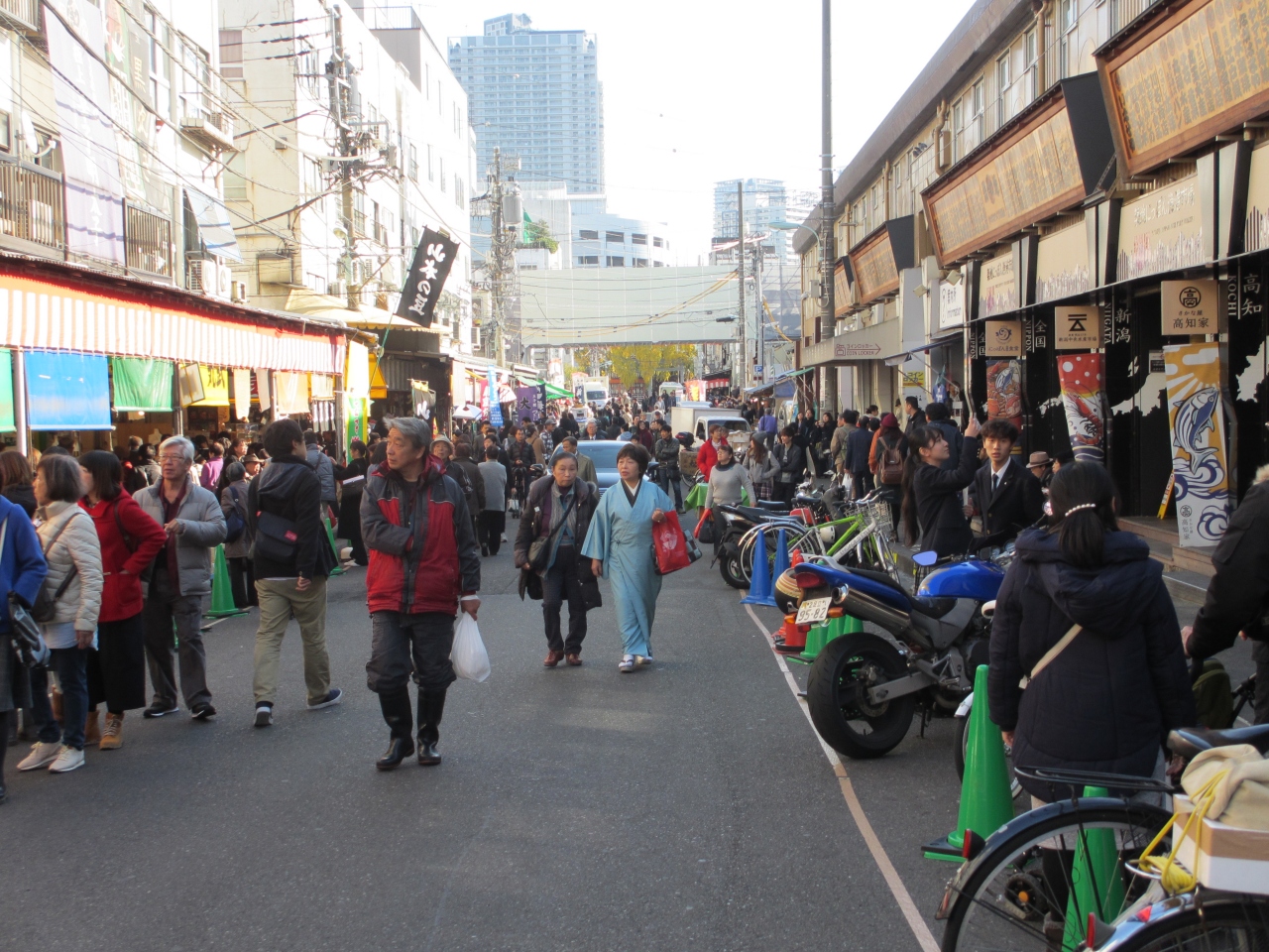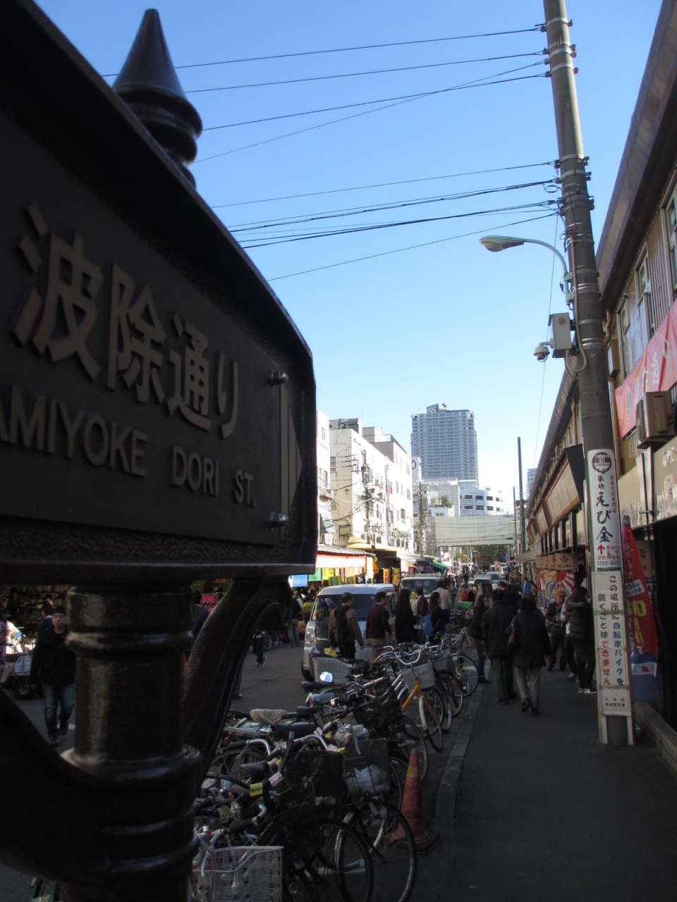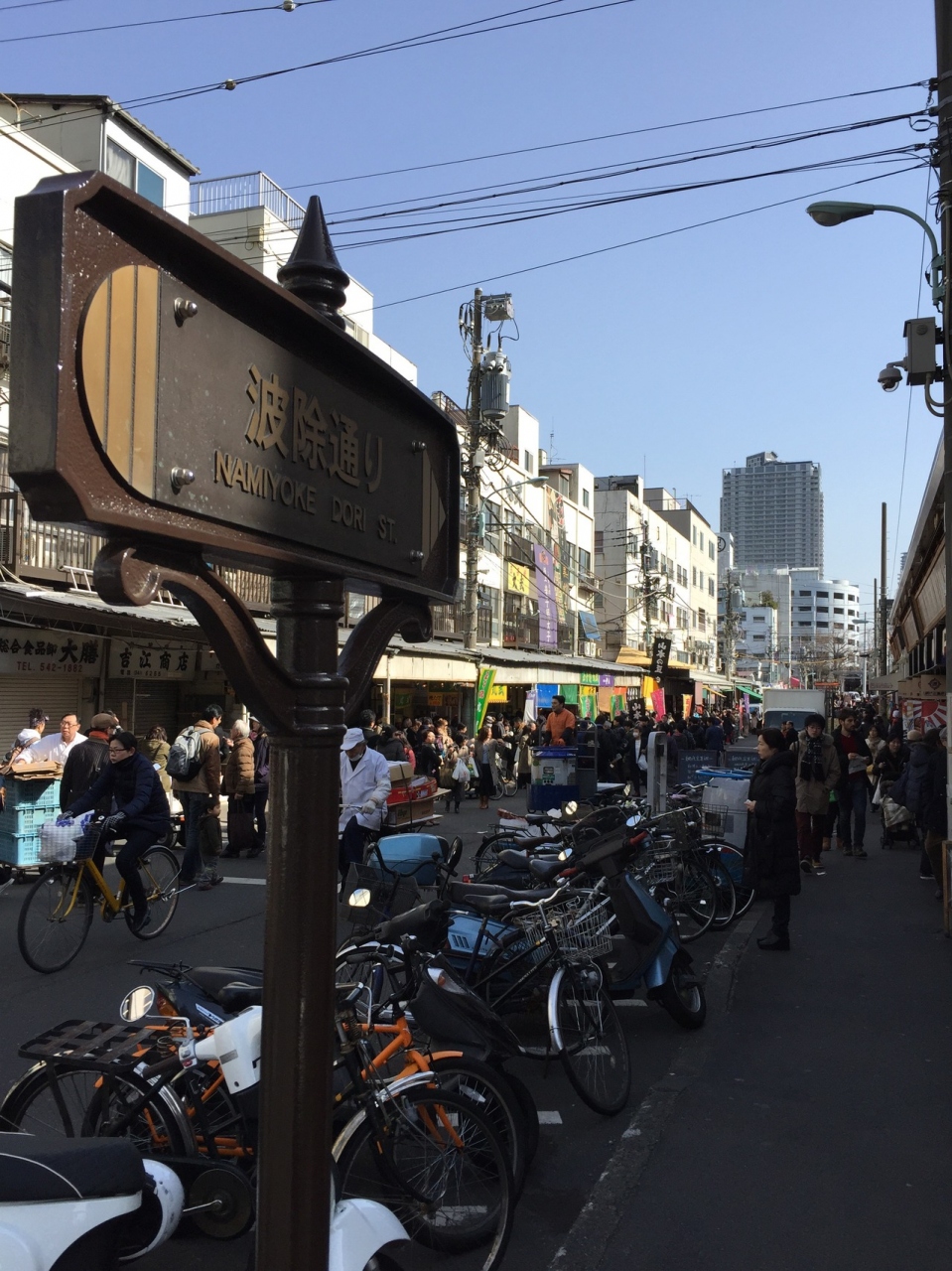 築地場外市場から続く、波除通りの様子です。広い通りです。
