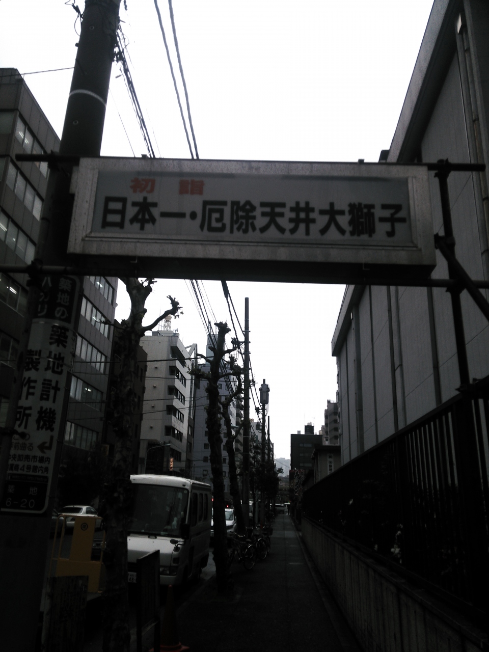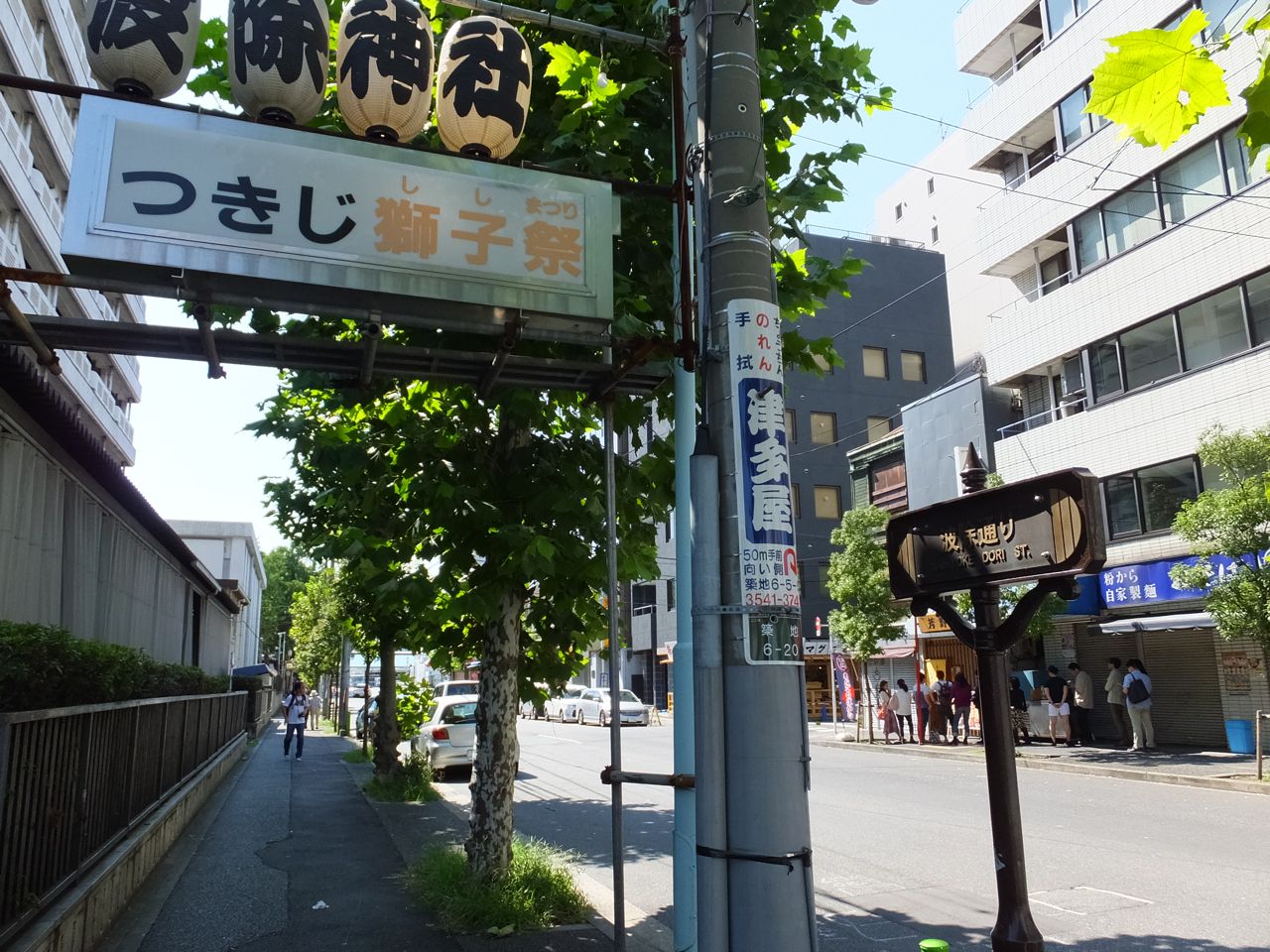波除通りに掲げられた、毎年恒例のつきじ獅子祭りの標識です