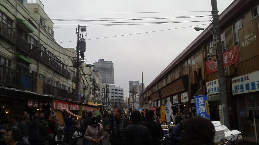 築地場外の賑わうとおり