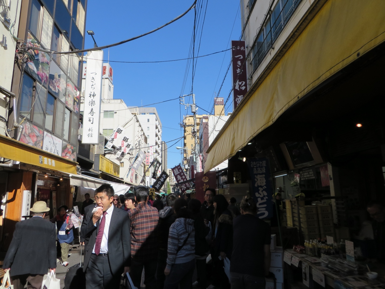 築地場外市場の飲食店などがひしめく通り