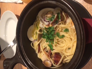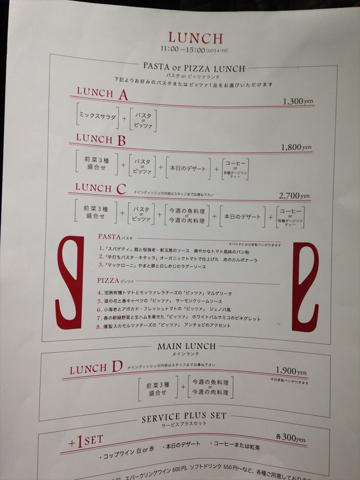 ランチはセットメニューのみ。私達は次の予定があったので前菜とパスタのセットとコーヒーを追加しました。