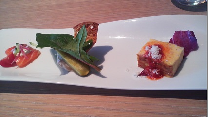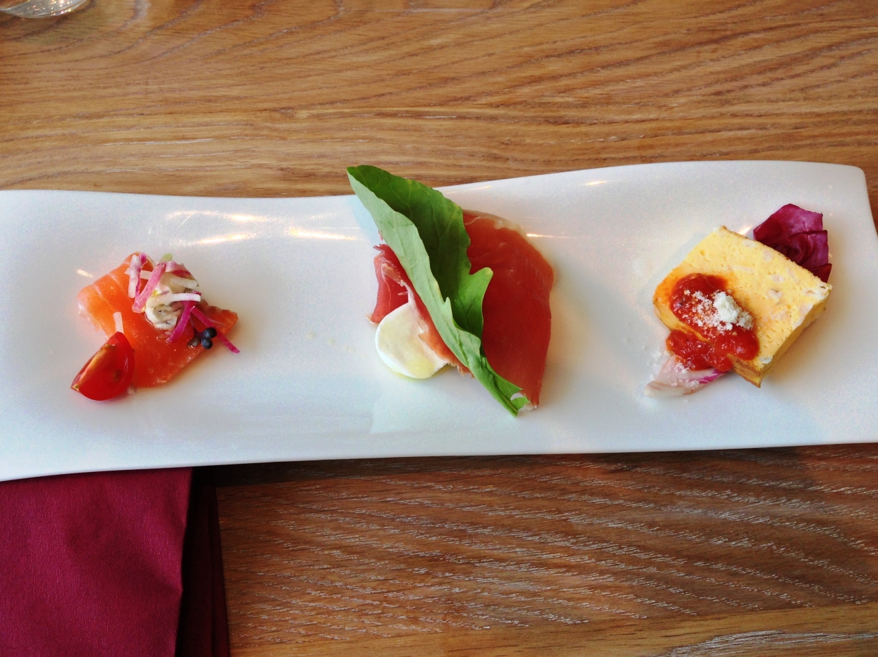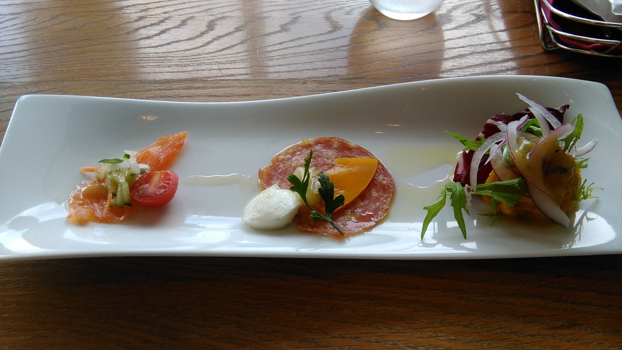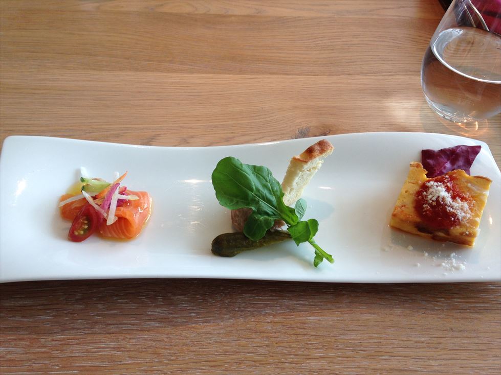 前菜は三種。右端のカボチャサラダが一番美味しかったです。