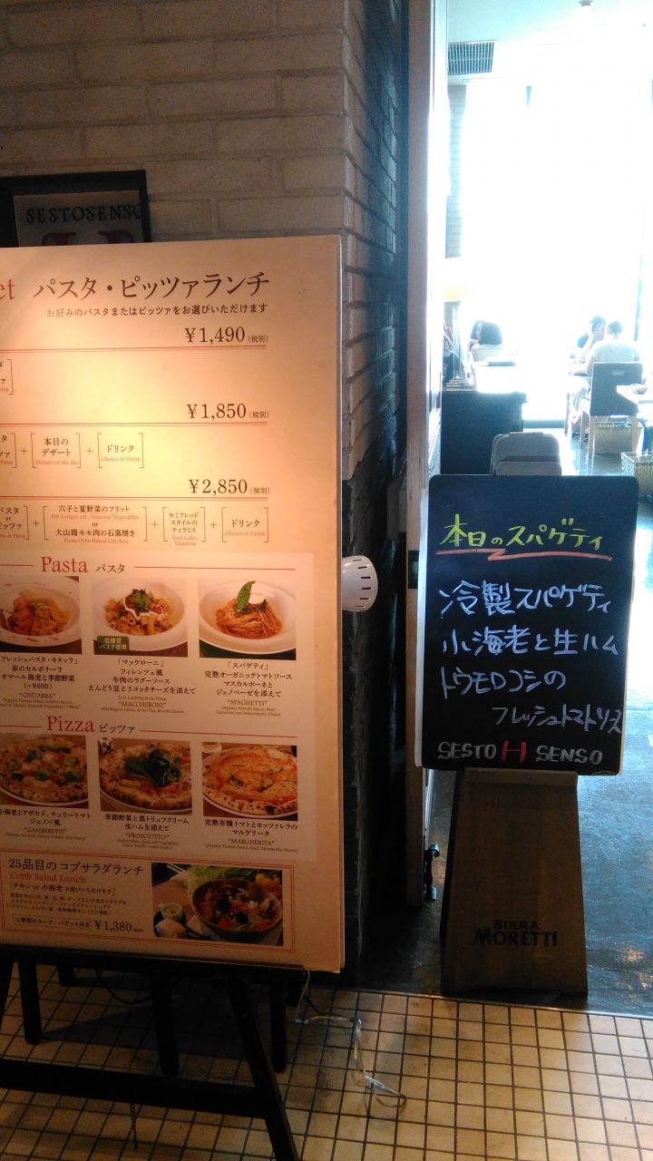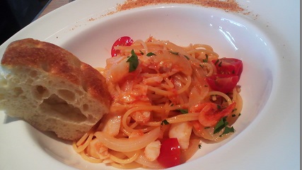 パスタは本日のパスタ:冷製パスタ 小海老と生ハム、トウモロコシのフレッッシュトマトソース にしました。