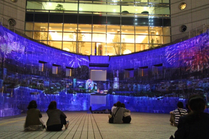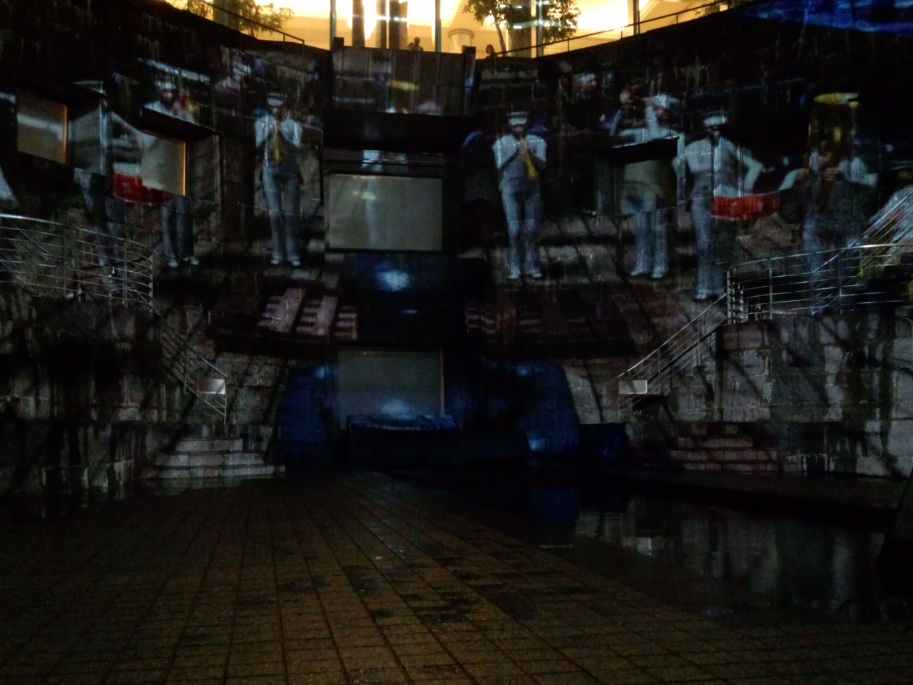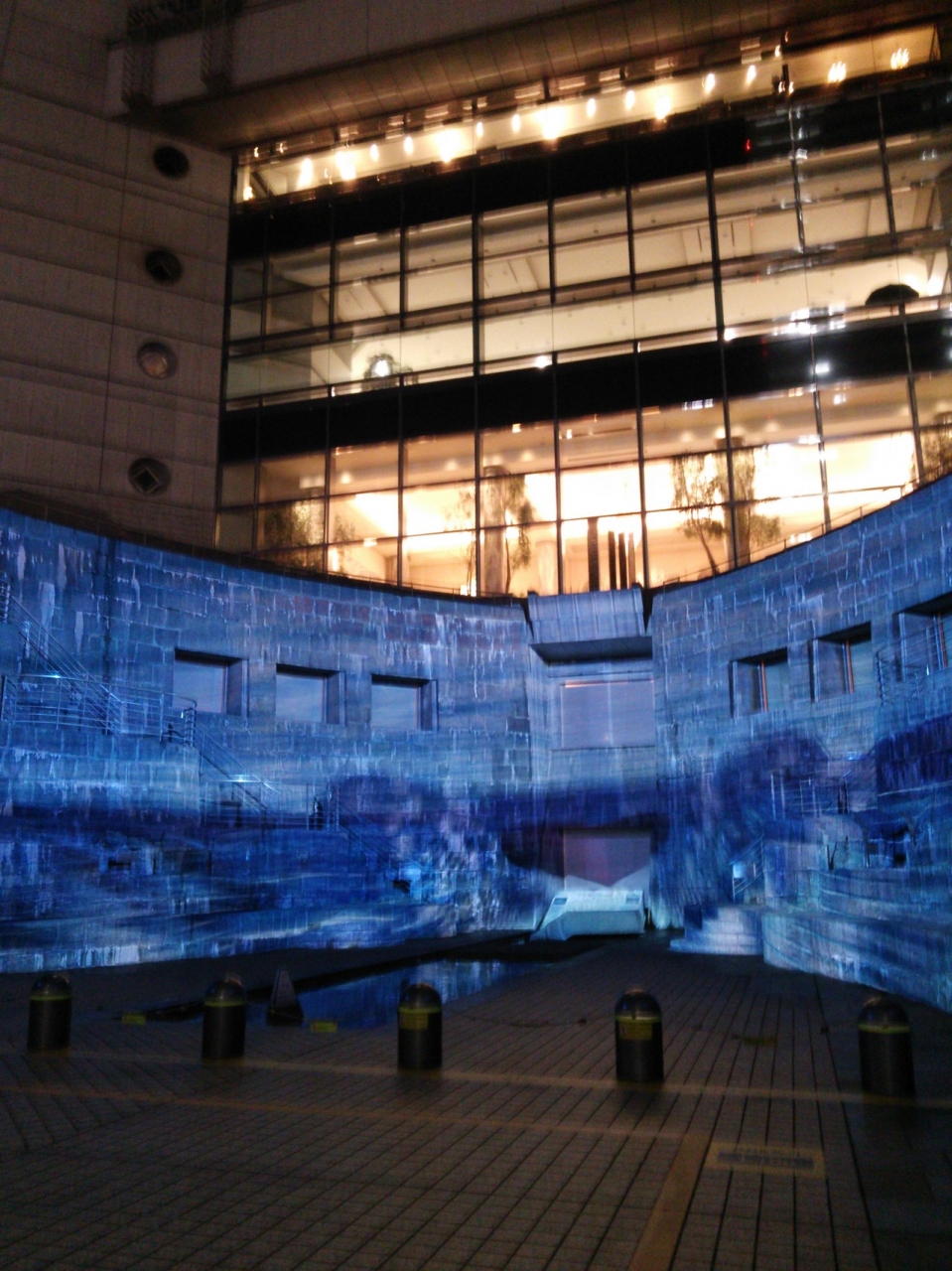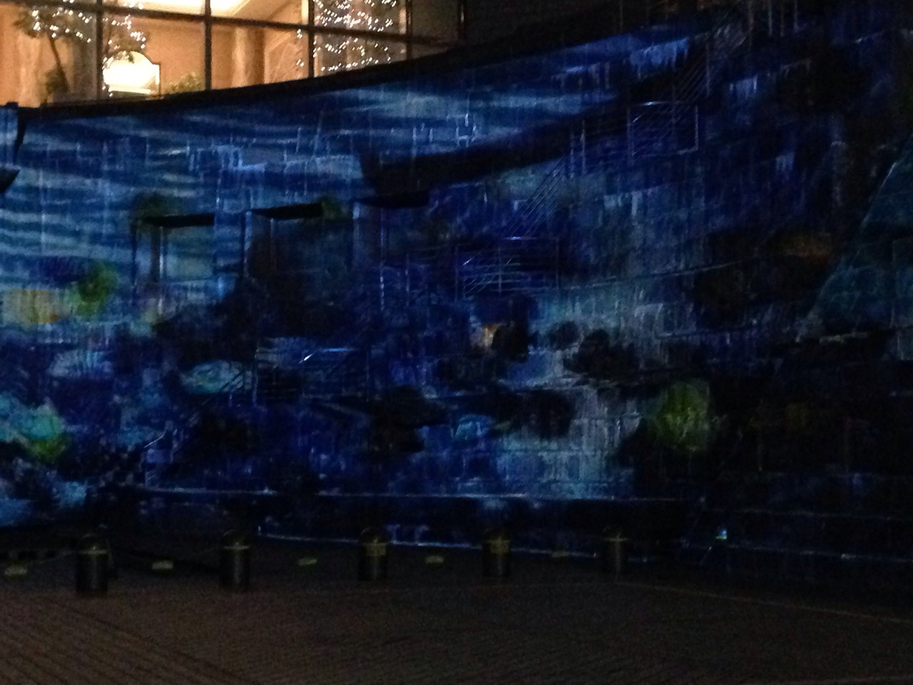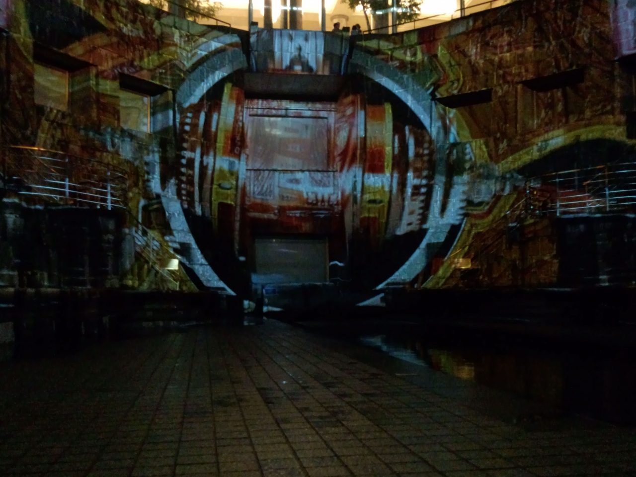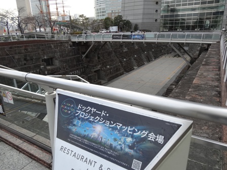 久々に「ドックヤードガーデン」を覗いて行こうと地下2階まで降りたのですが、ドアがすべて閉鎖されていて、入れないようになって... 続きを読むいました。全く知らなかったのですが、「プロジェクションマッピング」のお知らせが掲示されており、中からは入れないので外からアクセスすることにしました。ところが、外の階段も封鎖されており、係の方が「整理券が必要です」と言われ、中に入れなかったのですが、開始時間が近かったので、少しだけ外から眺めてみようと思って待ちました。