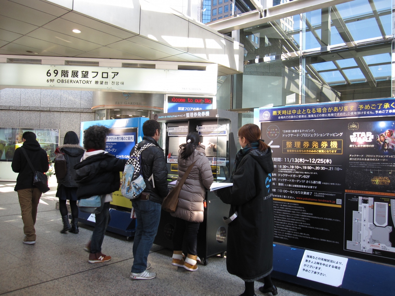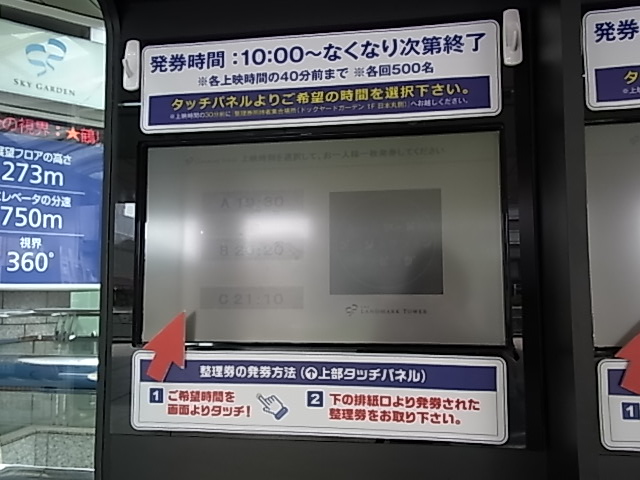 料金は無料で、予め整理券をとる必要があります。発... 続きを読む券機は動く歩道を降りてすぐ、ランドマークタワー前ですが、この日はクリスマスということもあり凄い列でした。