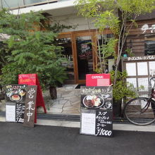 ビルの1階ながら店前に植樹と木のブランコが目印。メニューとプライスは看板で入る前に確認できるので敷居も高くない、カジュアル... 続きを読むなお店である。