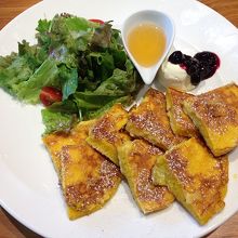 スイーツの店を探していて、パンケーキが見えたので入店したのだが、食事(軽食)もできる様子。一つ一つのお皿がとても大きい様子なので、コーヒー二つにスイーツひとつを注文してシェアした。シェアする人が多いのか、取り皿やフォークを快く二つ持ってきてくれて、慣れている感じだった。パンケーキは甘さを絶妙なところで抑えていて、とてもおいしかった。ただしとても大きくて、値段もそれなりなので、半分で半額にならんかな、と、思ったりした。