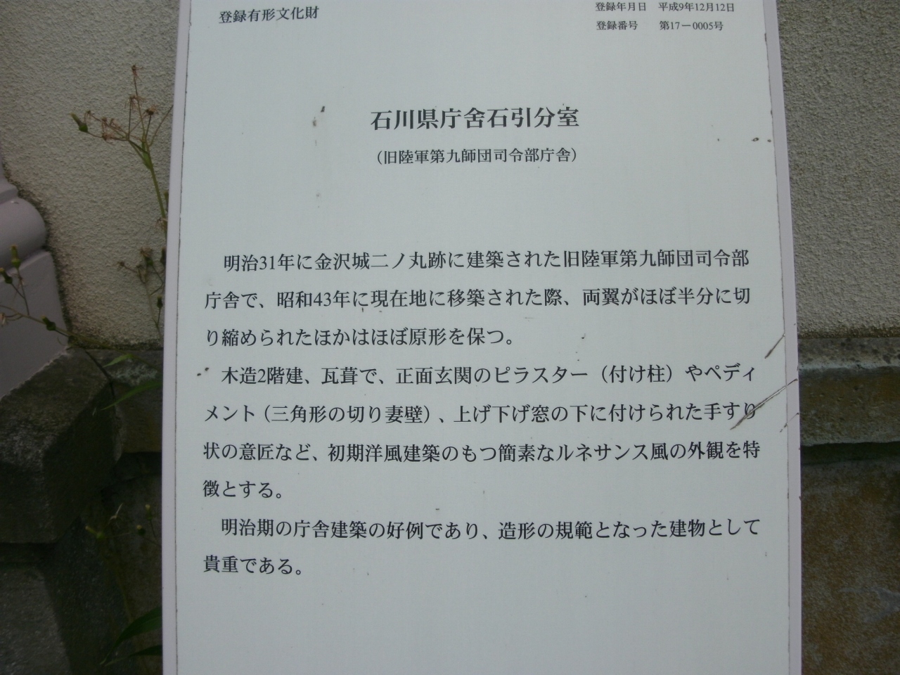 石川県庁舎石引分室 (旧陸軍第九師団司令部庁舎)について質問してみよう!