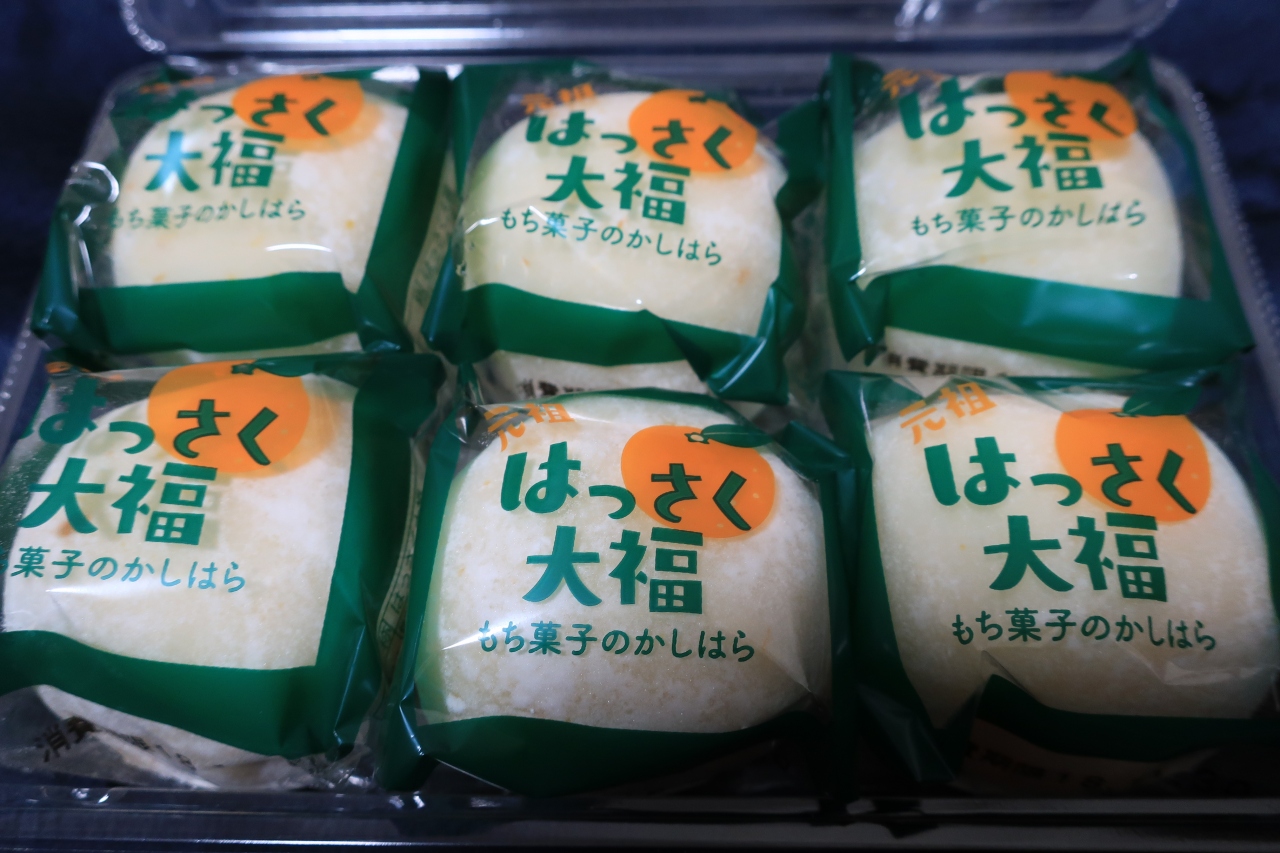 【かしはら】のハッサク大福は正に絶品でうな... 続きを読むる美味しさです。広島に行ったら必ず買いホテルで食べます。ハッサクを白あんで包み、ハッサクの皮を練り込んだみかん餅で包んだ大福。店の交通の便が悪いのが難点ですが、何と広島駅中の土産店【EKIE】で購入できました。たまたま店のスタッフに聞いたらたった今入荷したとのことで、迷わず自分用と土産用を購入しました。今年の3月でハッサク大福165円+税、ハッサクゼリーもとても美味しかった。【EKIE】には、他にも名物の練り物【ガンス】や宮島の【牡蠣のオイル漬け】もあり、とても重宝しています。ただハッサク大福は日持ちしないので要注意です。冷やして食べると最高です。 閉じる投稿日:2020/06/07