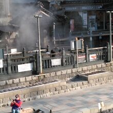 あら湯の壺の中で最後に流れる