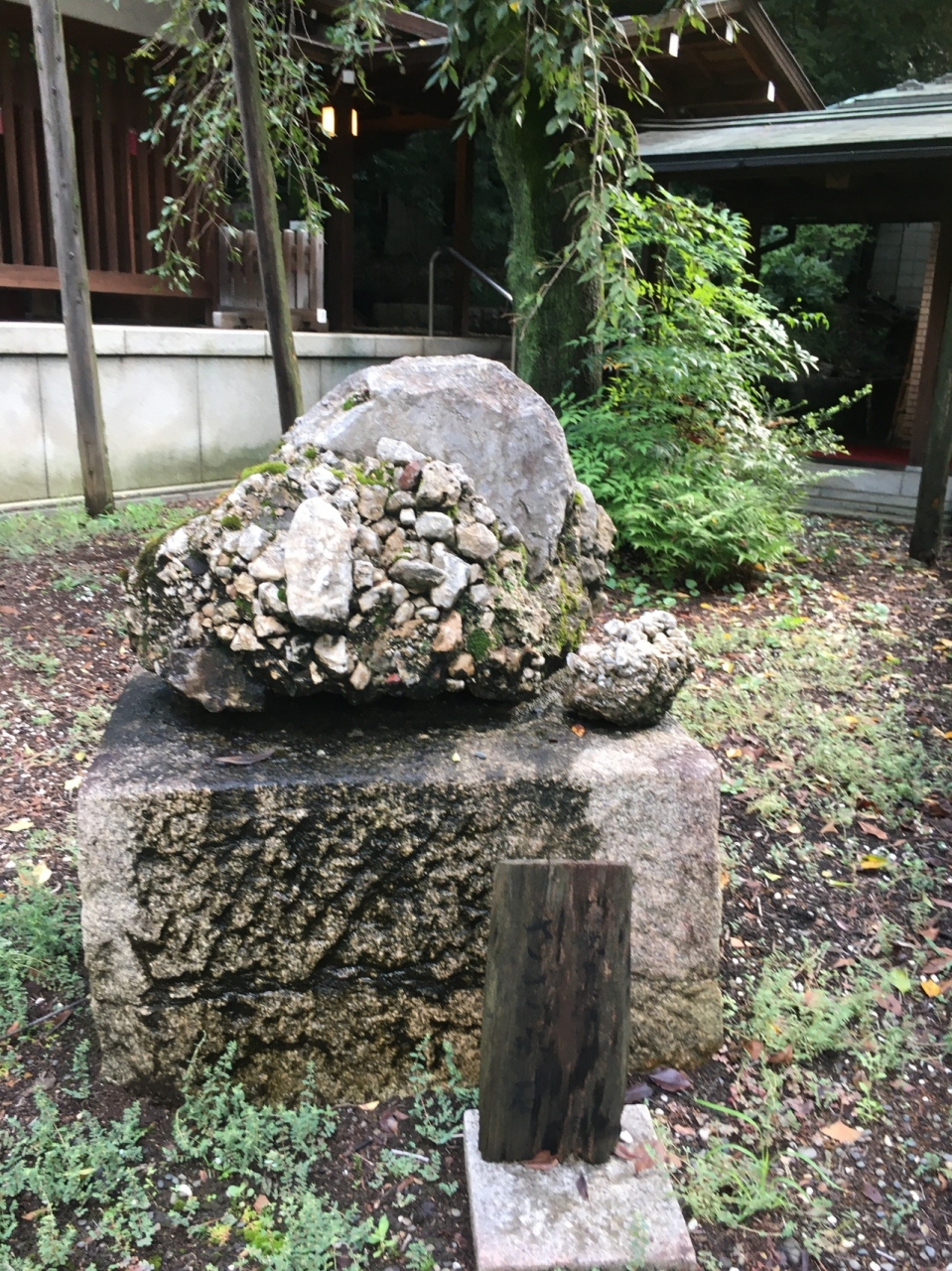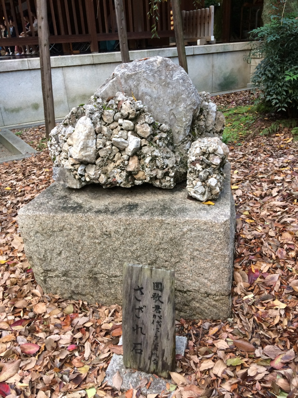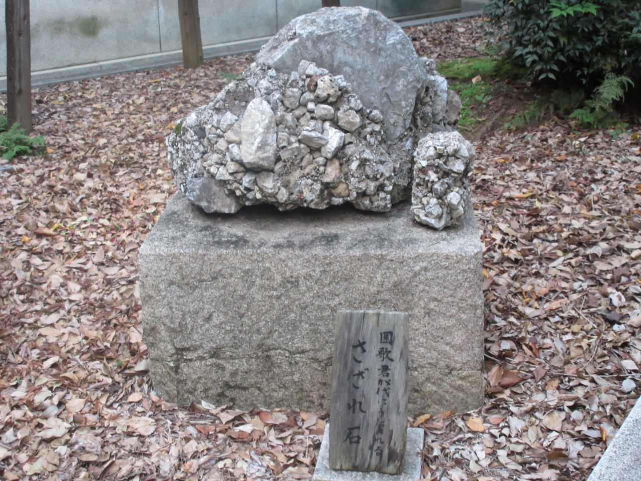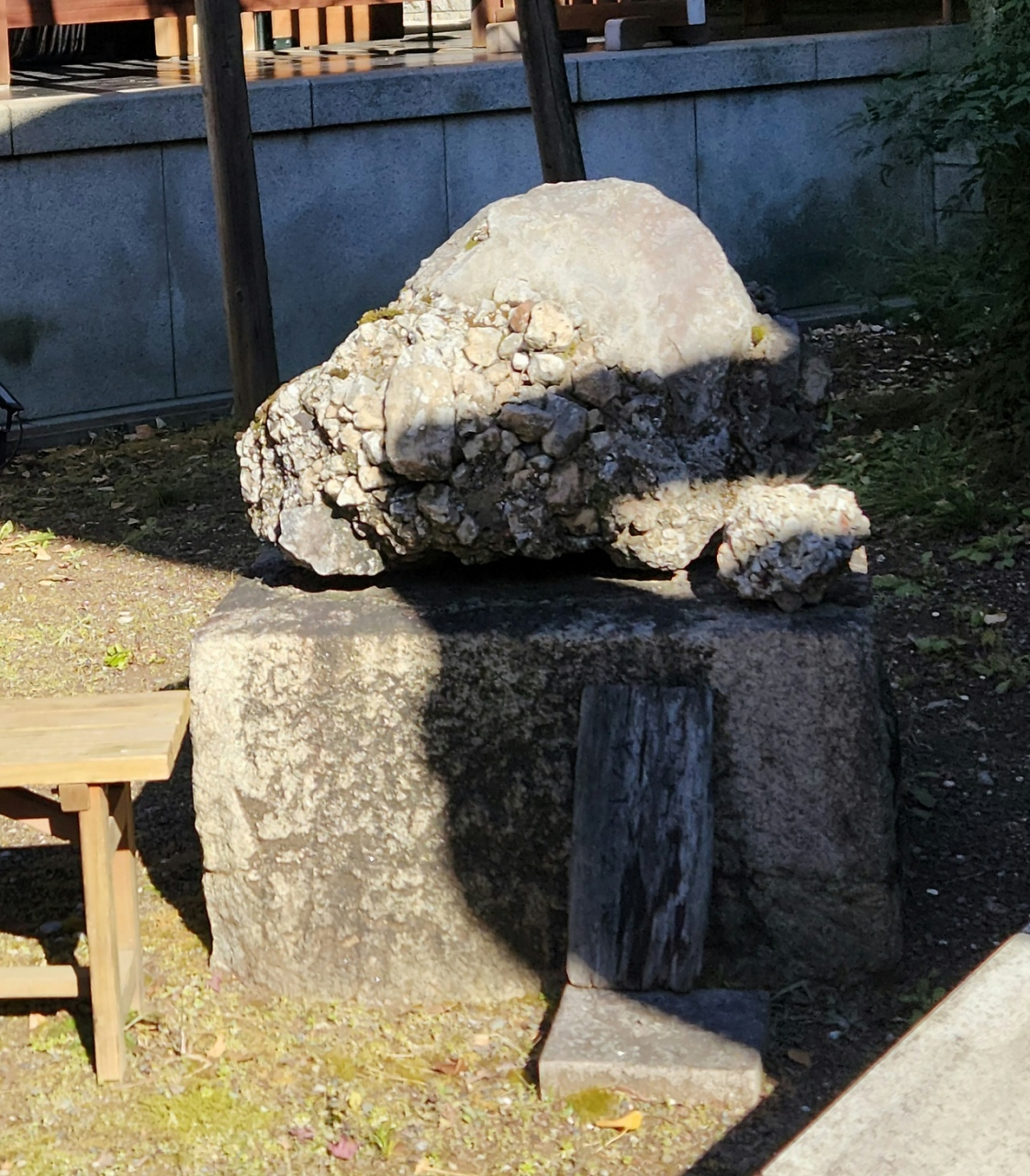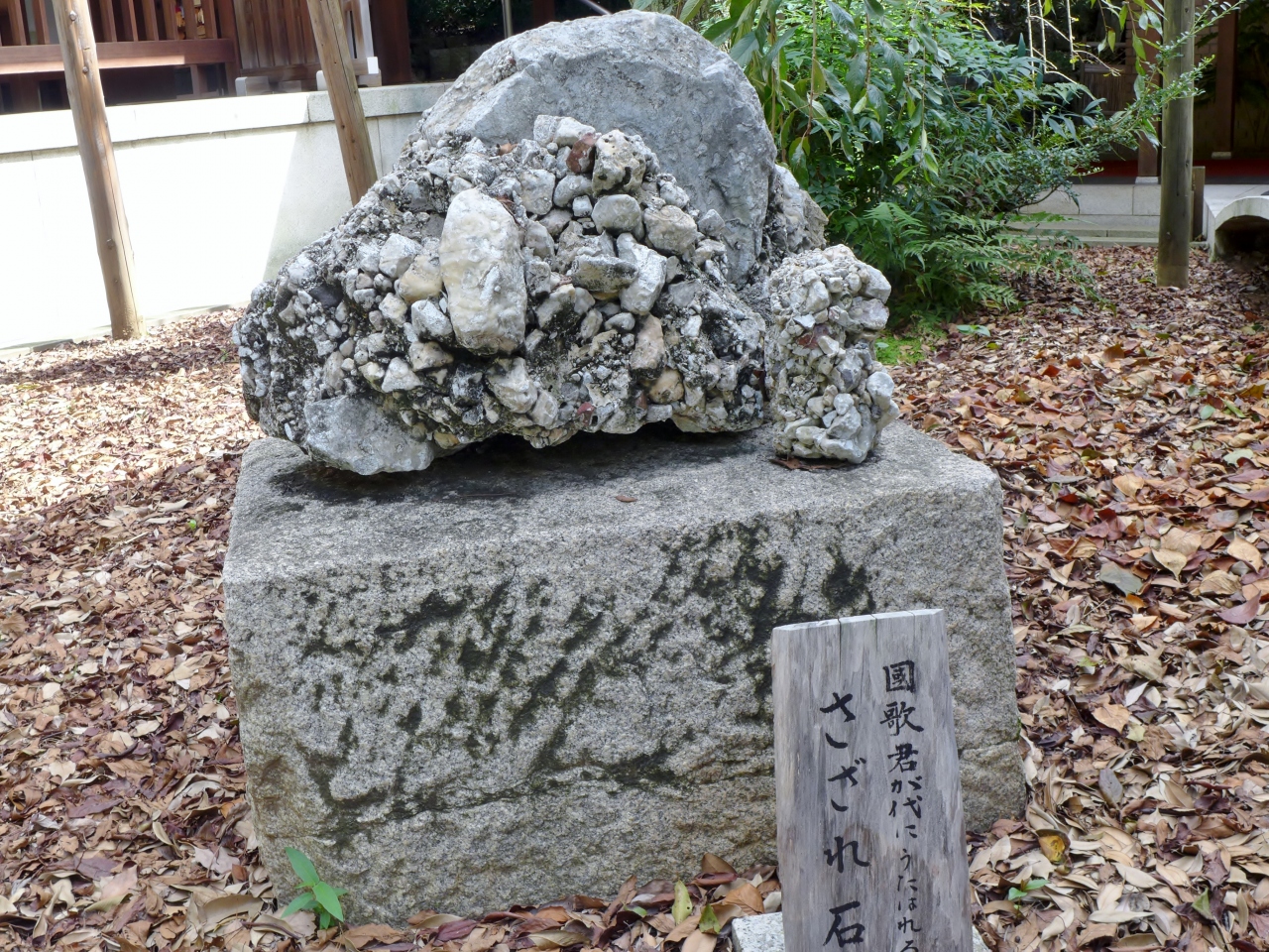 乃木神社のさざれ石を見ると、まさしく小さな礫岩が、石灰質により大きな硬い岩への凝固への過程を進んでいるようです。