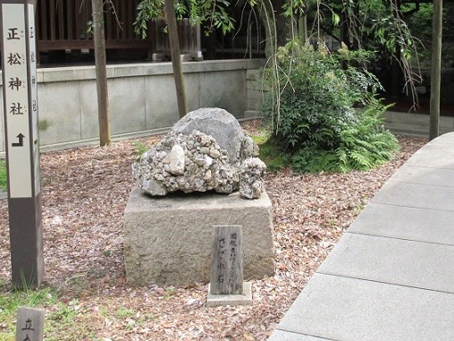 乃木神社のさざれ石は、乃木神社から正松神社に至る通路の横に置かれています。
