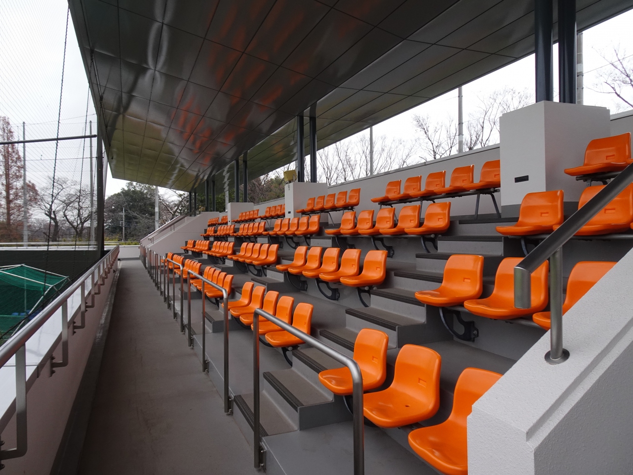 メインの第一球場は両翼100メートル、中堅125メートルと選手たちの本番の舞台となる神宮球場よりも広い! ネット裏には屋根付きのスタンドもあり立派です。高校野球の東東京大会の予選で使用されるほか、先般のWBSCプレミア12では豪州チームがこちらで練習していました。