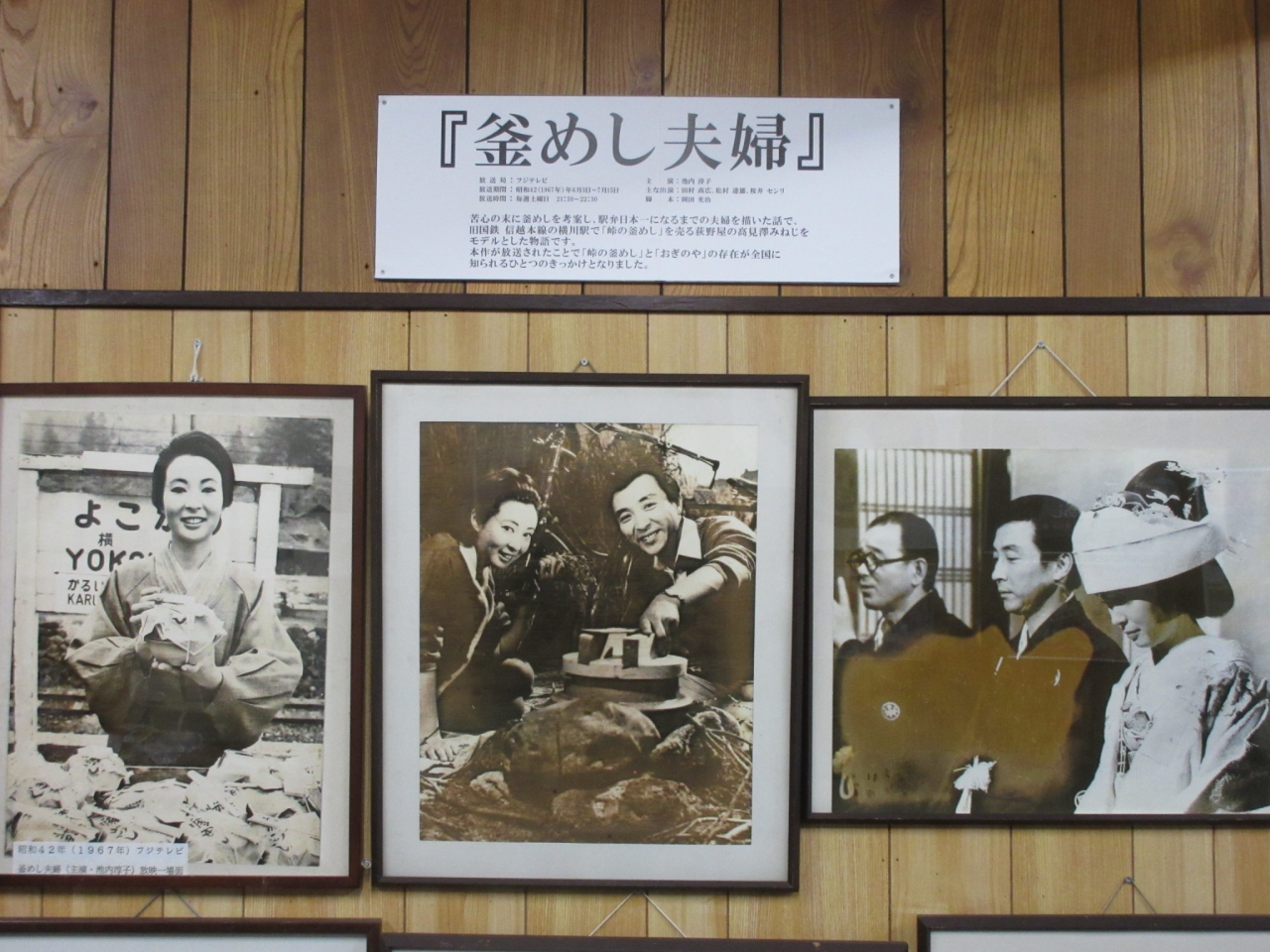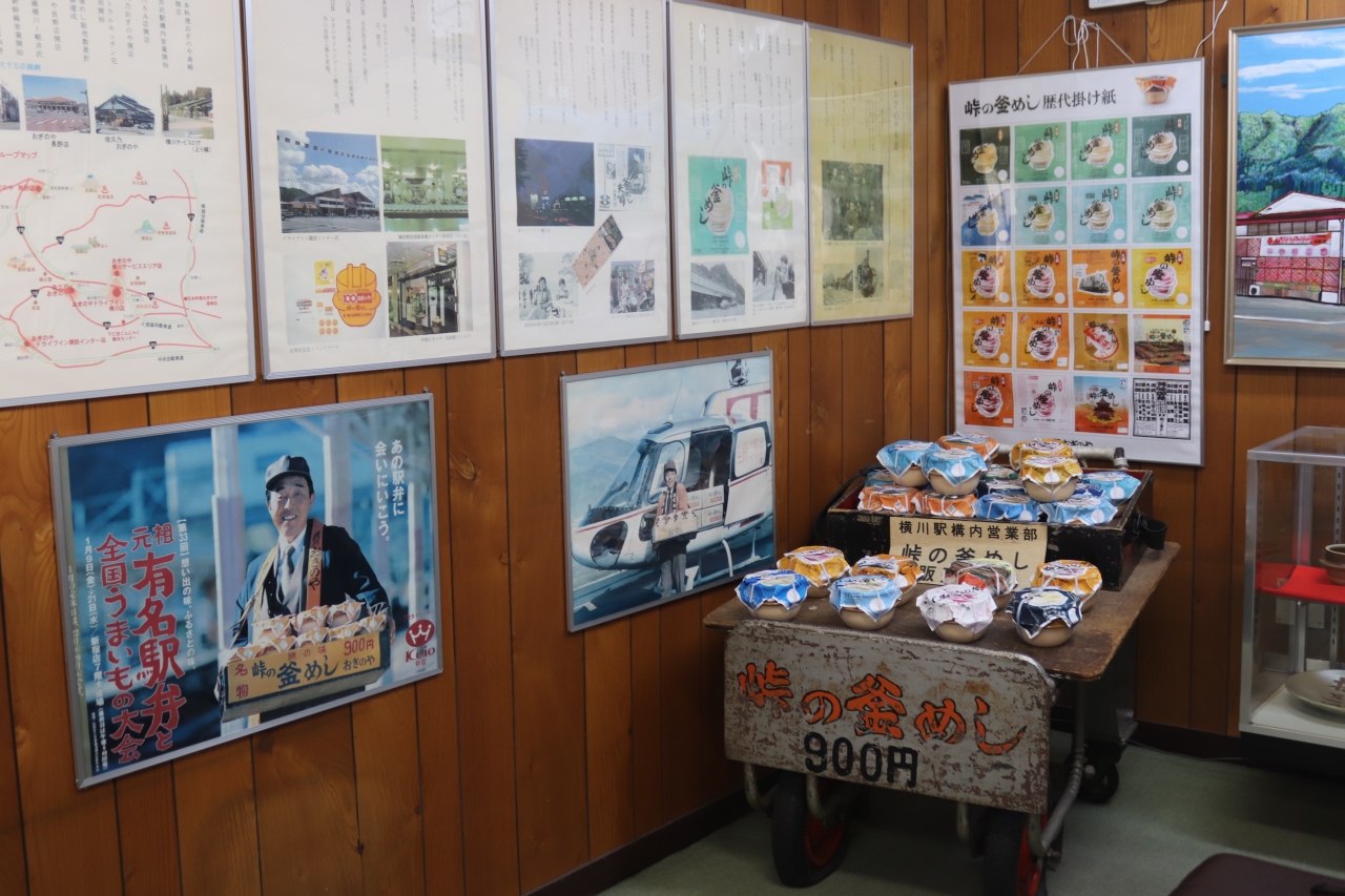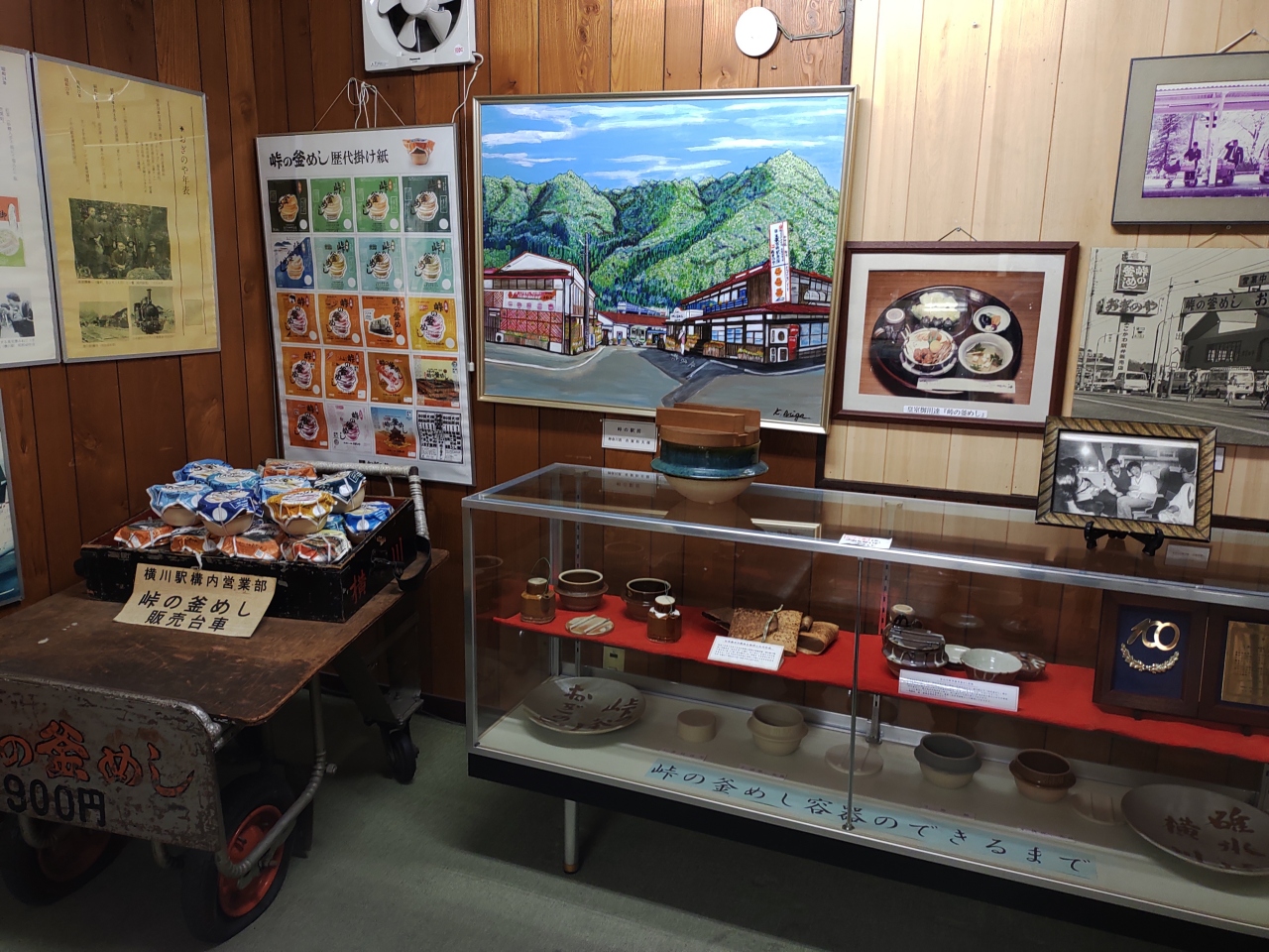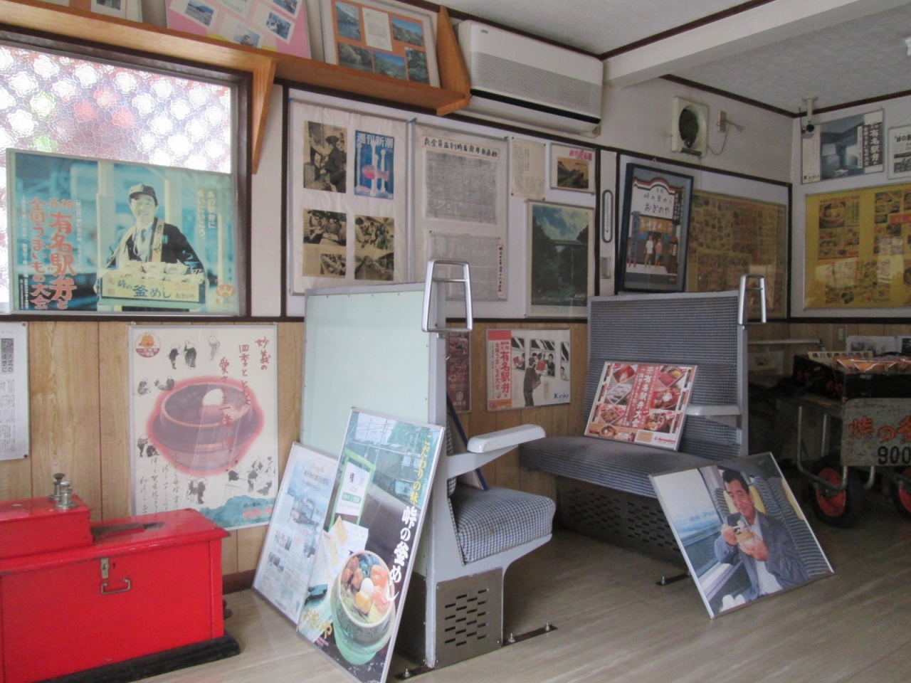 「横川」駅前、「おぎのや本店」の向かい側にある小さな資料館です。元々「横川」駅の駅弁だった「峠の釜めし」は全国区ですし、近... 続きを読むくの「碓氷峠鉄道文化むら」や、そこから乗車するトロッコ列車、また「めがね橋」などの観光地・観光施設は週末など込み合ったりしますが、この辺りを観光する人のほとんどはマイカー利用らしく、「横川駅」の利用客は多くはありません。そこで駅前で営業している「おぎのや本店」も閑古鳥が鳴いております。ましてや、その前にある小さな資料館ですから見学者はほとんどいません。さて「おぎのや」オーナーの持つ住居スペースの一部のような館内には誰もおらず、自由見学になっています。展示は「峠の釜めし」が駅のホームで売られていた頃をイメージするように客車の座席が一対、釜めしを売るときに利用していた番重など細々としたもの、京王百貨店の駅弁大会などのポスター類、店がモデルとなって放映されたテレビドラマの一場面の写真などですが、とにかくメンテナンスがなされておらず、廃墟寸前。また展示品の解説も少なく、ただ置いてあるだけって感じですし、照明に工夫もされていないので、せっかくの展示品も「じっくり見よう」という気にさせません。善意で始めたのかもしれませんが、却って「おぎのや」の評判を落としているような… 閉じる
