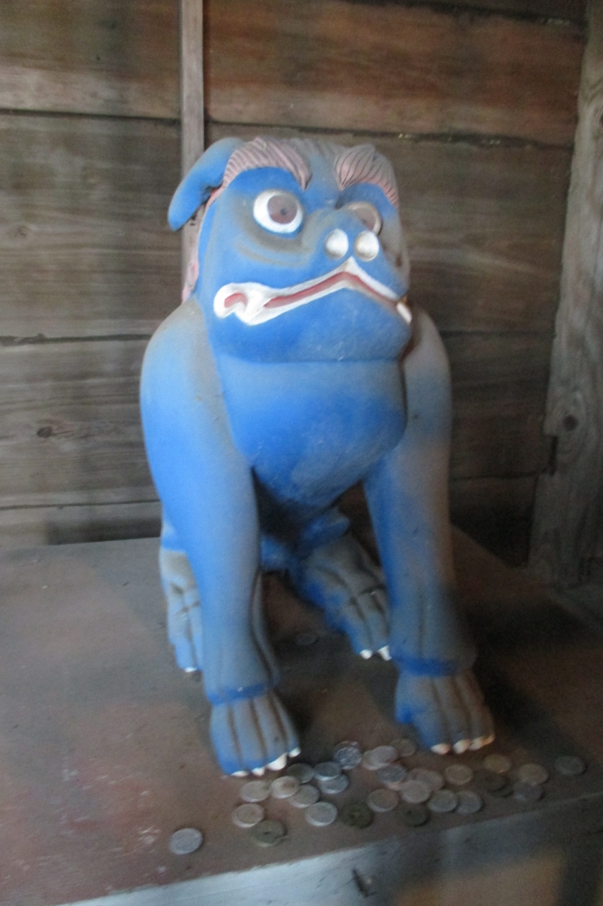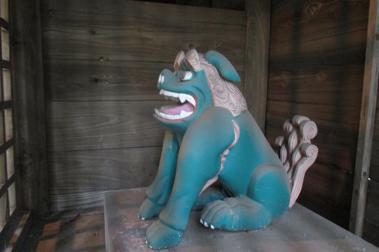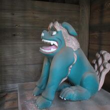 綺麗に彩色された狛犬がありました。