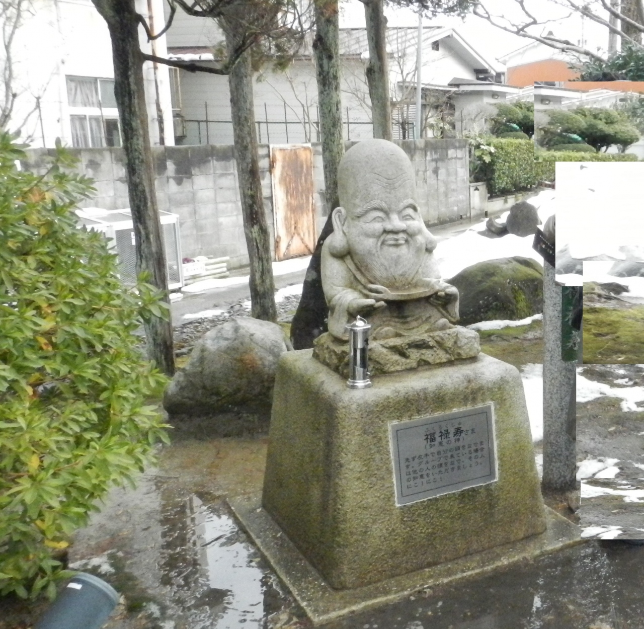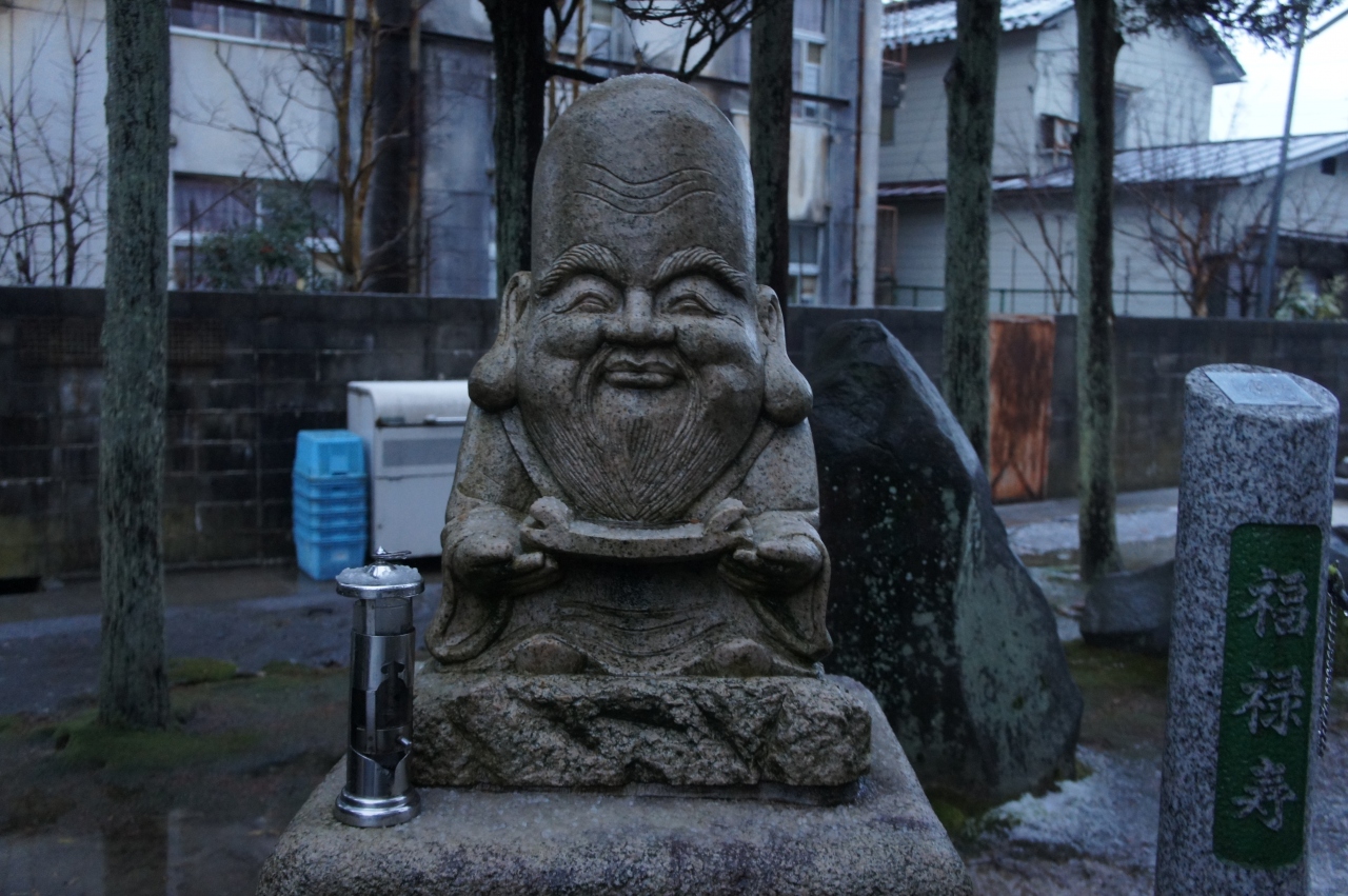 信行寺の福禄寿像を、幸福を呼ぶと言われている七福神巡りの途中で見学しました。