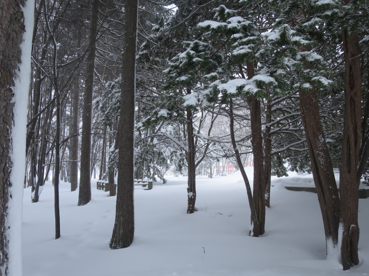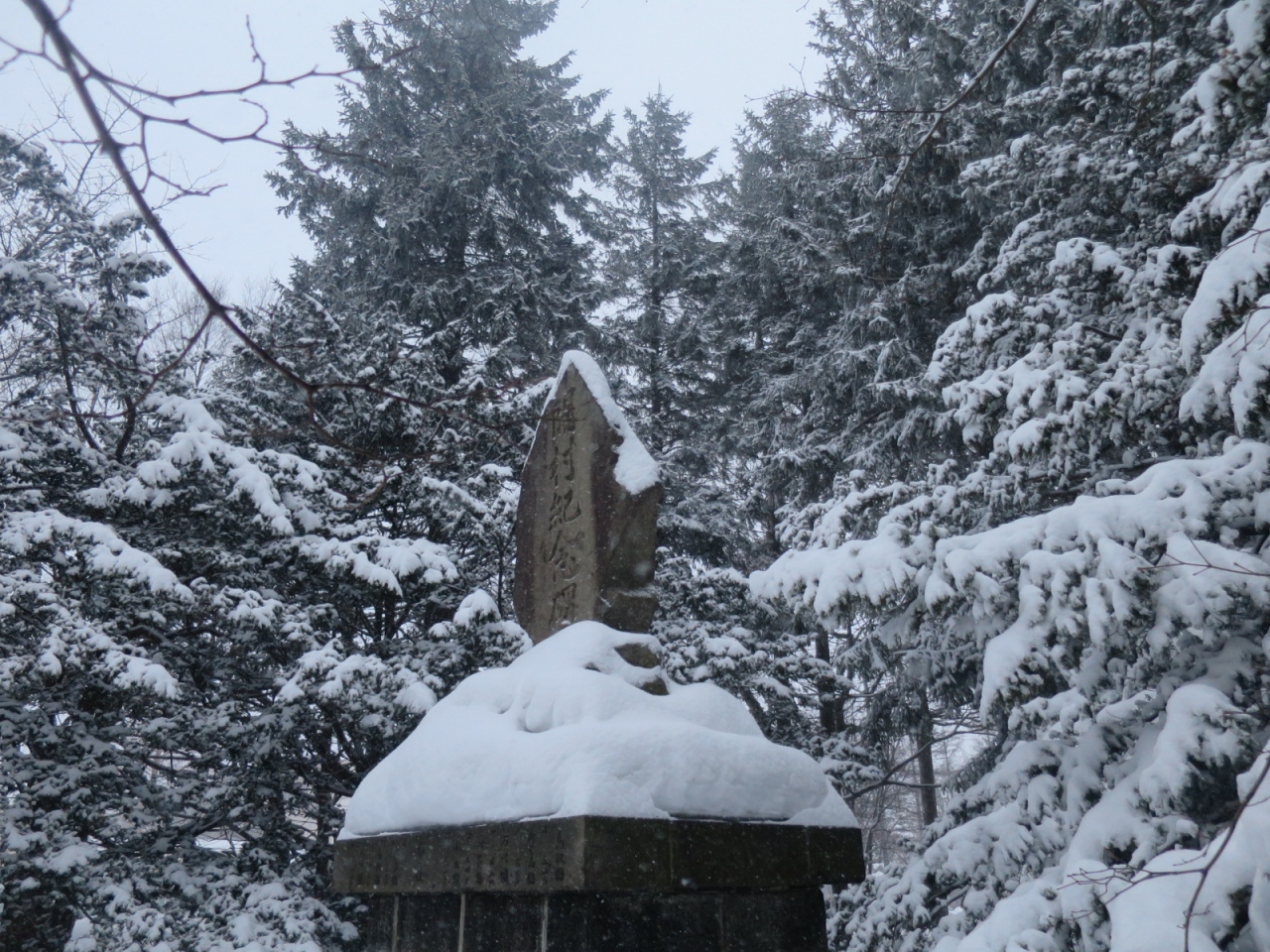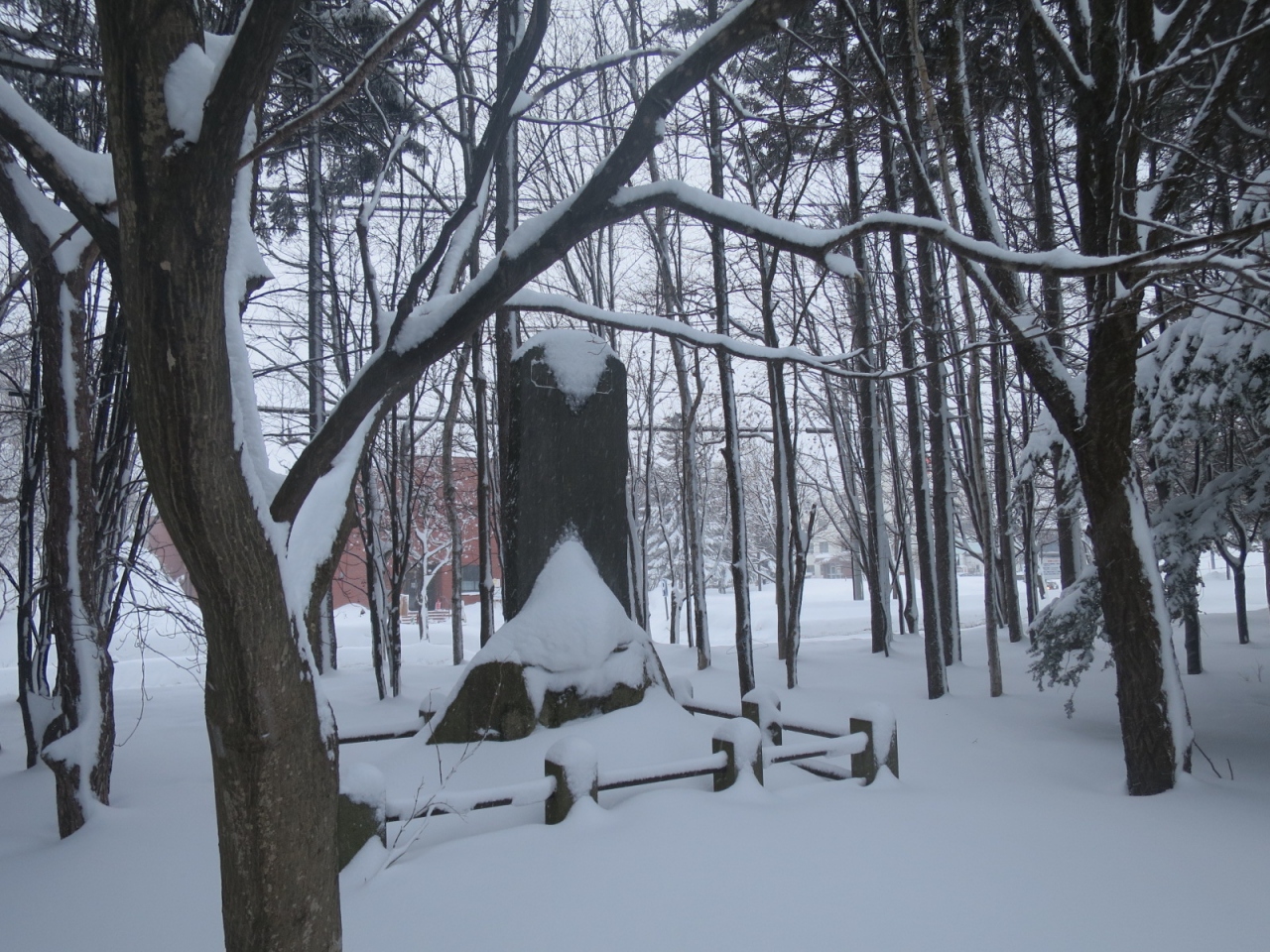 野幌開村記念碑などがあり、野幌の開拓を記念する緑地ですが、冬は雪に覆われ、スノーシューなどがないと容易に立ち入ることができ... 続きを読むませんでした。