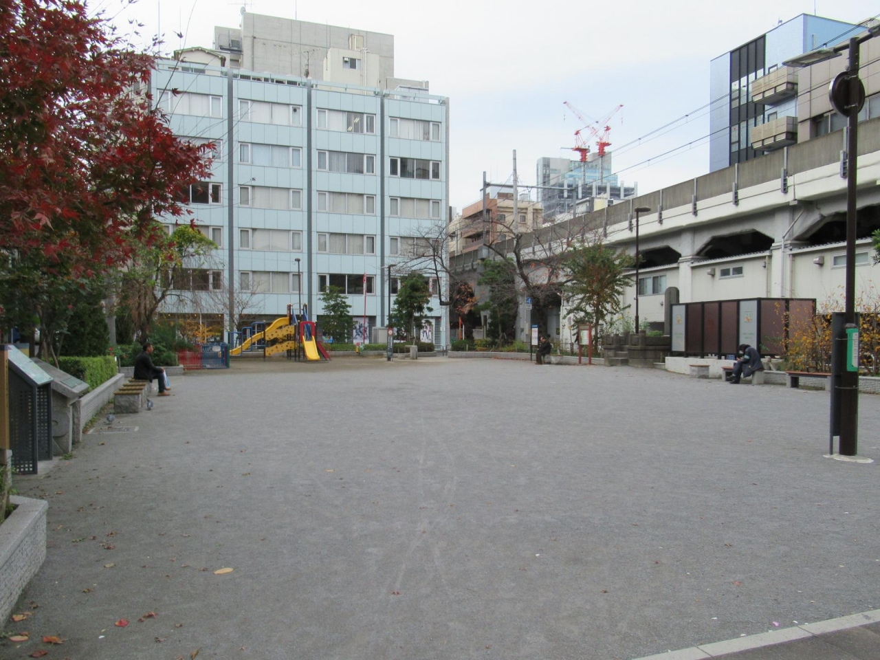 立ち寄った折は、1,2組の親子が遊具で遊び、数人がベンチで休んでいる位の静かな公園で、町名由来板や石碑、稲荷社などゆっくり見れ、休憩も出来で良かったです。