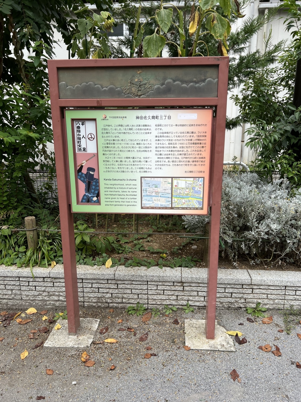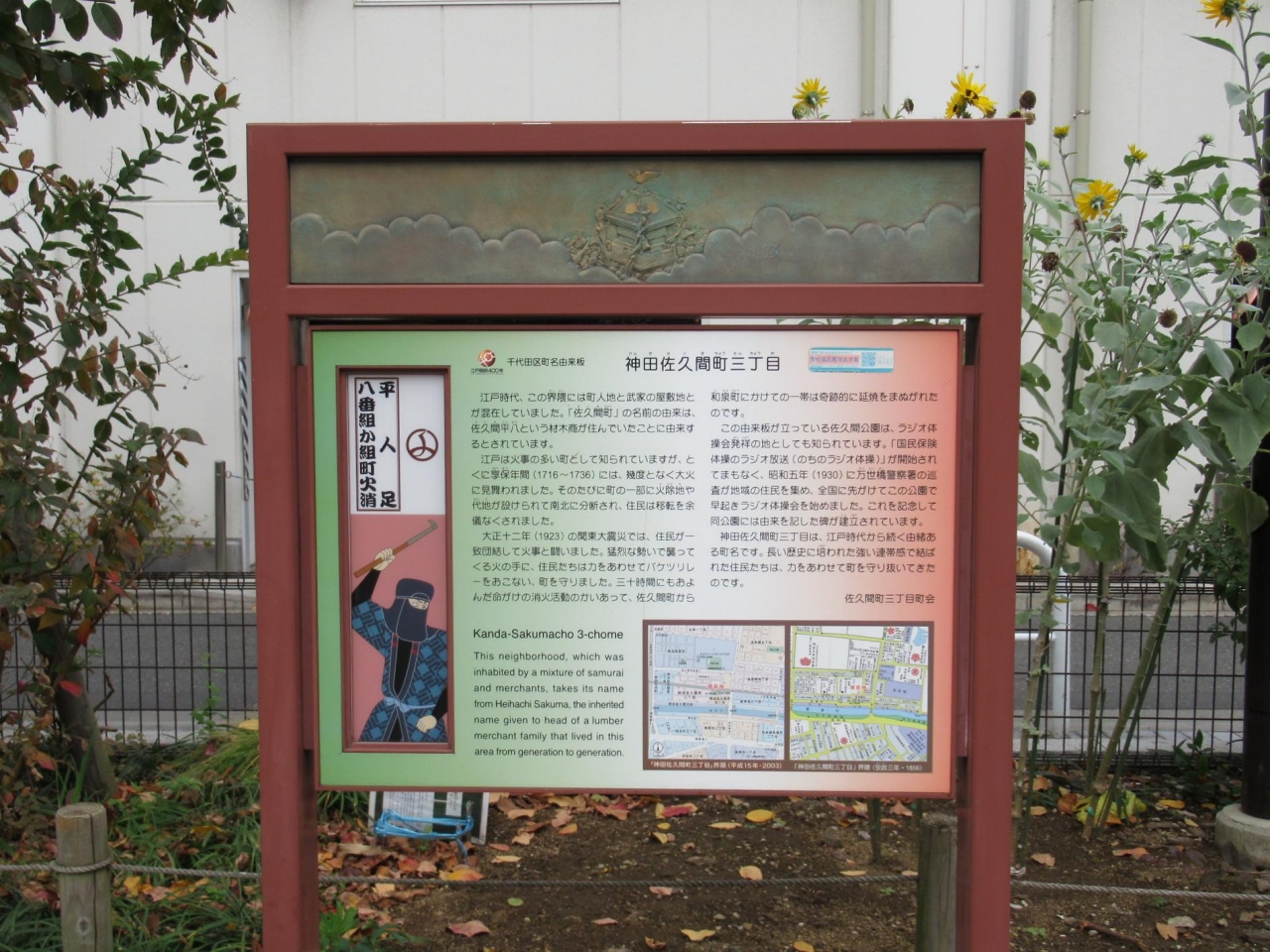 また、千代田区町名由来板として神田佐久間町三丁目と四丁目を初め石碑や稲荷社などがあり、見ると昔も今も町会などの方々の苦労や努力が窺えます。