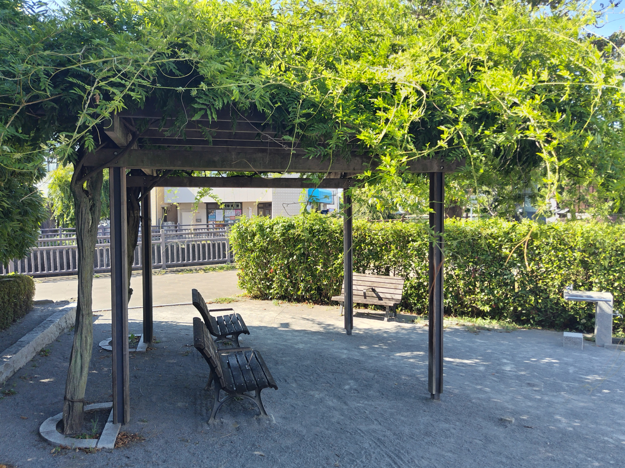草加せんべいの生みの親、おせんの名にちなんだ公園で、旧日光街道の旧道の北端と、県道49号線足立越谷線との交差点にあります。... 続きを読む レトロな常夜燈や、草加せんべい発祥の地碑などがあります。せんべいに見立てた円形の花崗岩(高さ3.3m)と、せんべいを焼く箸に見立てた御影石(高さ5.7m)があります。 藤棚にベンチもありました。 旧日光街道の途中にある「おせん茶屋公園」は別の公園です。私は最初混同してしまいました。 閉じる