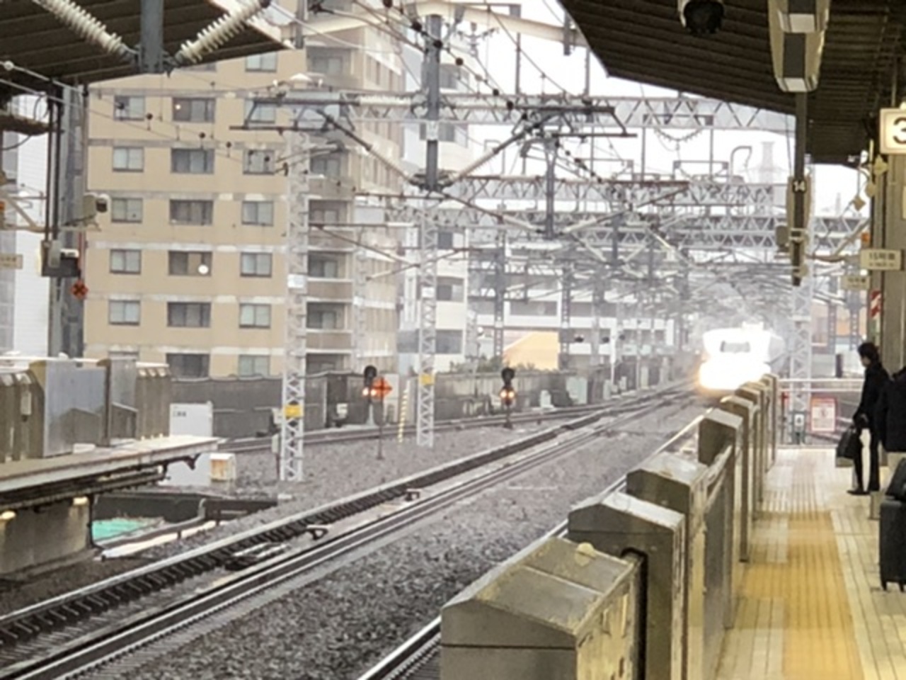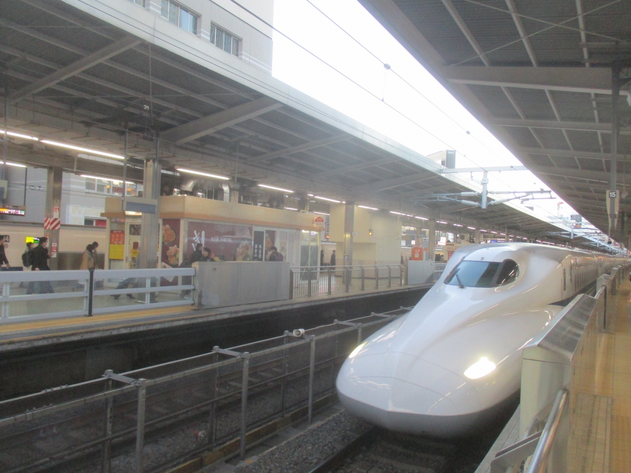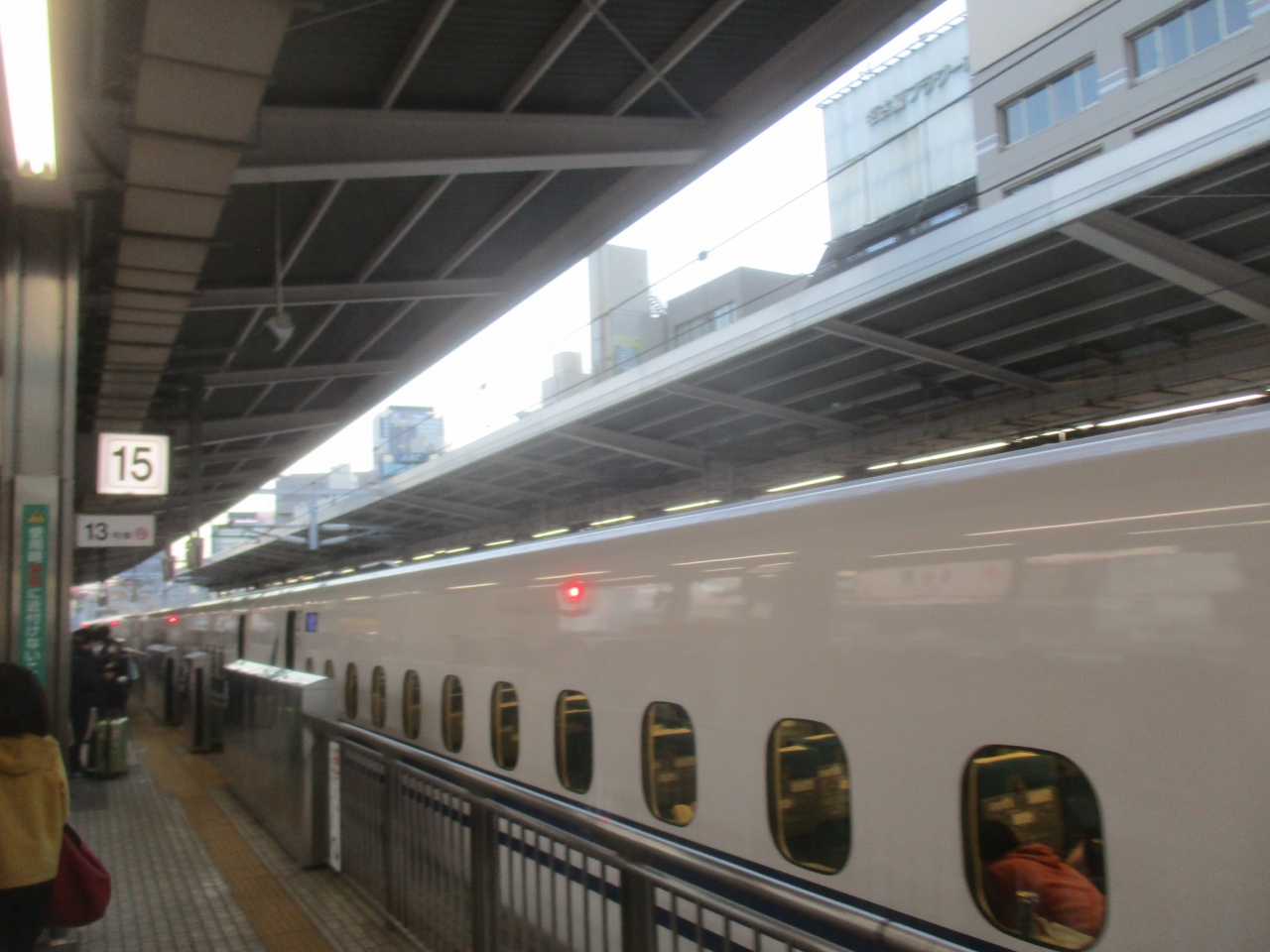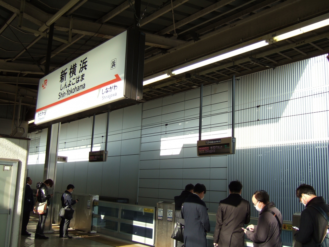朝8時過ぎの新横浜駅上りホームは混んでいました