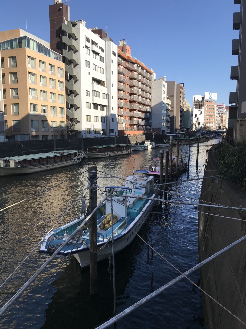 橋自体はこれと言ったことはない普通の橋では と思うが、欄干越しに下流方向を覗くと屋形船が泊めてありとても風情のある眺めです。