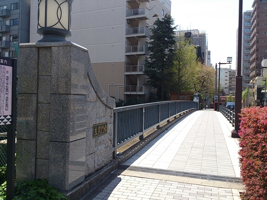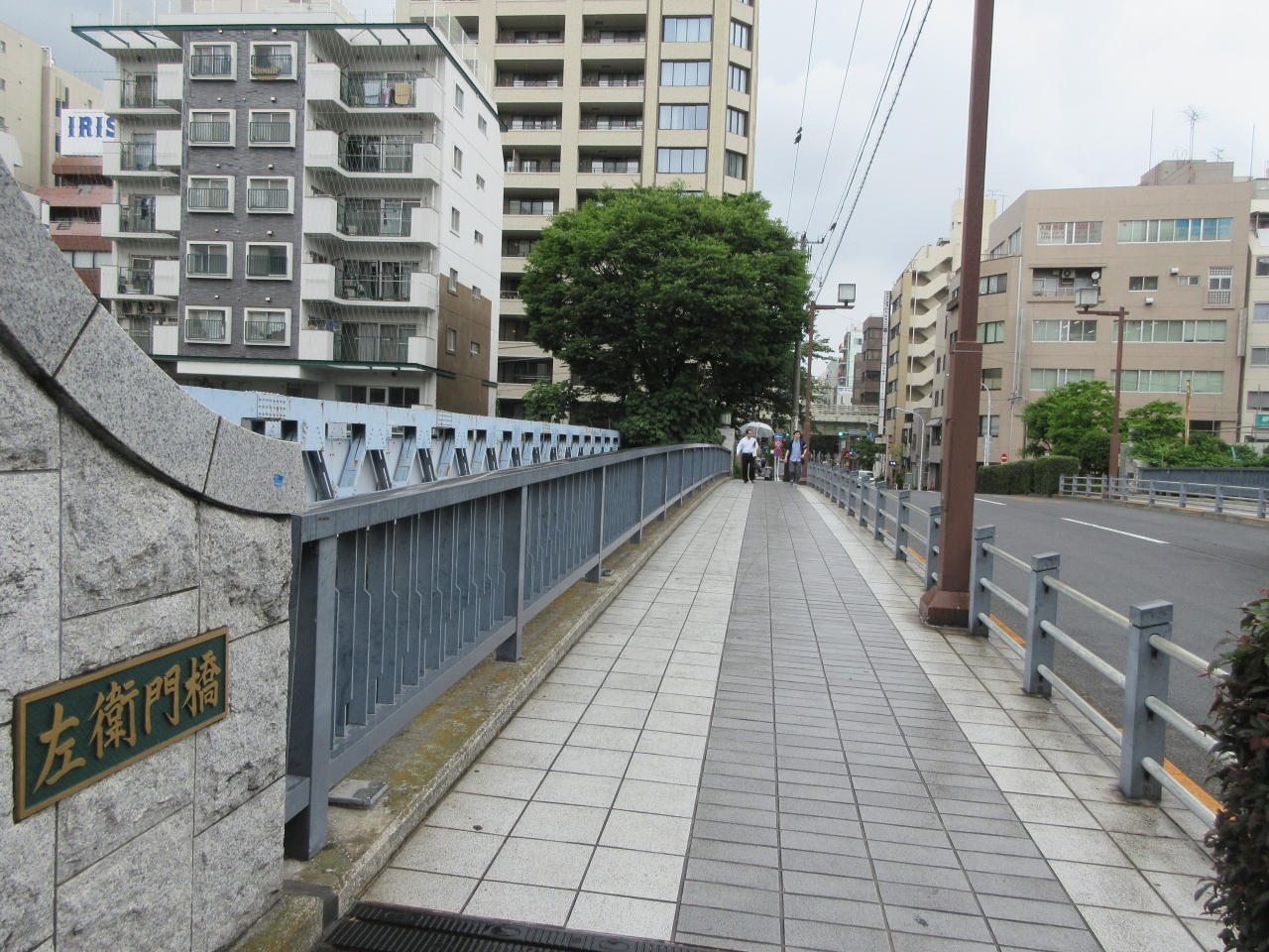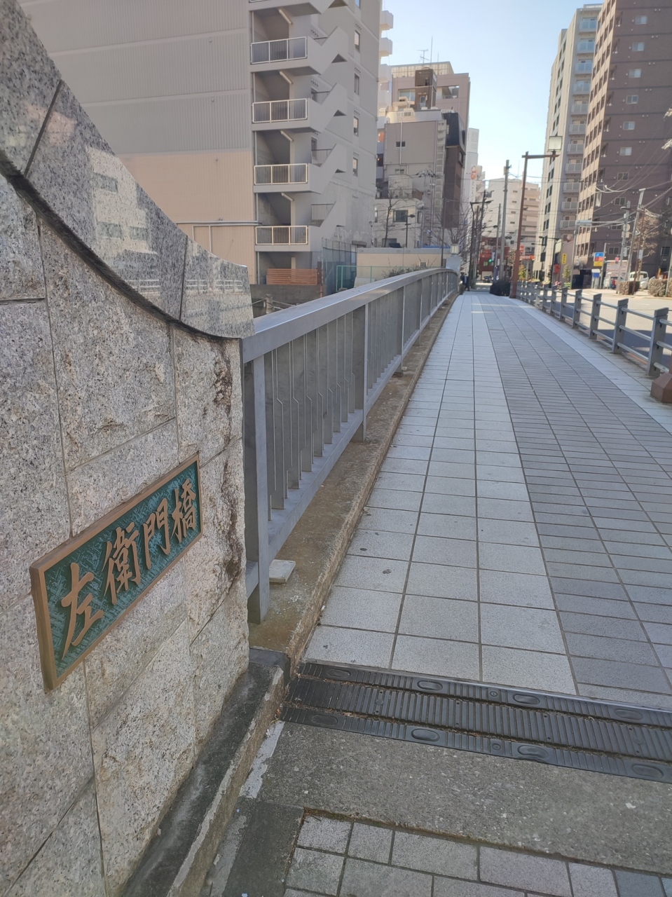 浅草橋駅南東の神田川に架かる橋で、清州橋通りが通っている。片側2車線両方向通行で比較的広くが短い。平日、自動車はかなり行き... 続きを読む来しているが、歩行者は少なかった。お勧めの点は、最初の橋は明治8年に架橋され昭和に入り現在の橋に架けかえられたこと、昔、橋の北側に鶴岡藩の酒井左衛門の下屋敷があったことから地名が左衛門河岸と呼ばれその地名から橋の名称がつけられたと考えられること、橋の東側には浅草橋がありその手前には屋形船が係留していること、また両側の川沿いには古いビルなどの下町の景色が続いていること、このように屋形船や下町の街並みが見えることから特に屋形船や下町に関心のある人にとっては訪問する価値があることである。 閉じる