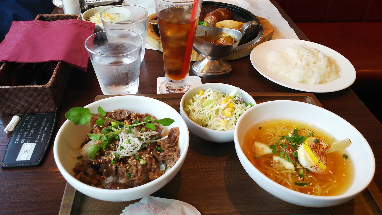 主人は、ハンバーグセット、私は、やき肉丼とレモン冷麺セットにしました。