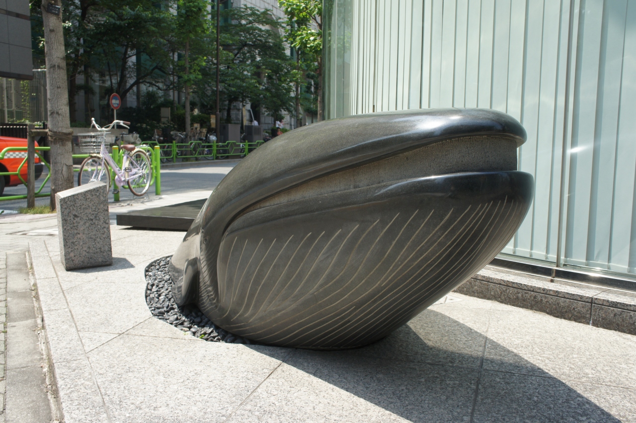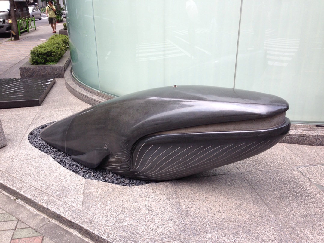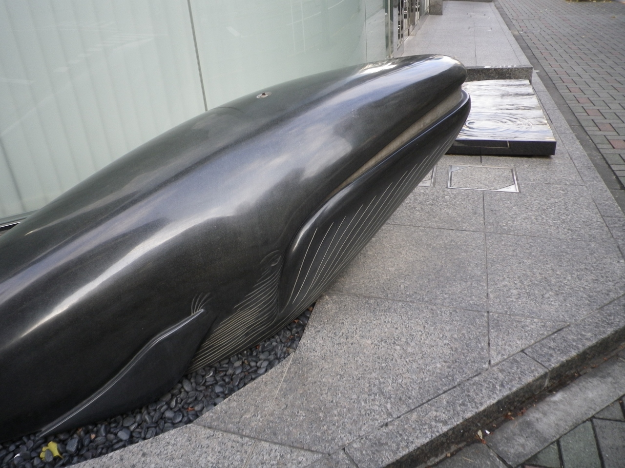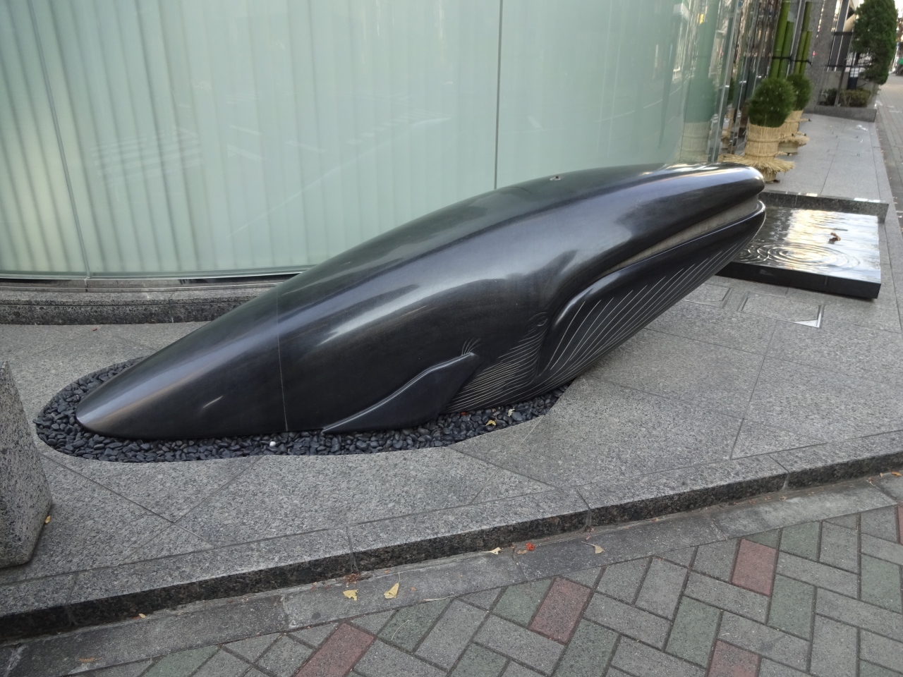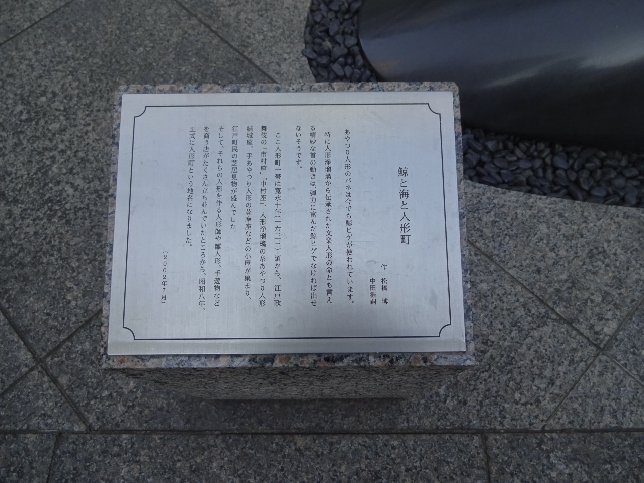 人形浄瑠璃の命であるクジラのひげから「鯨と海と人形町の碑」~人形町~
