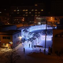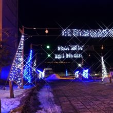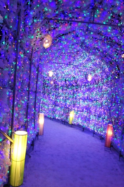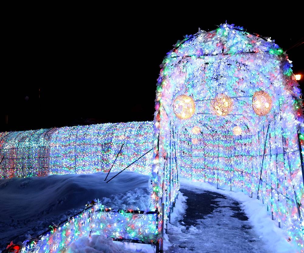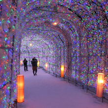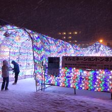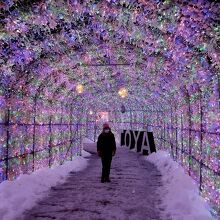 洞爺湖温泉街の中心部にあるにぎわい広場にある約70m、40万球の電飾が輝くトンネル。