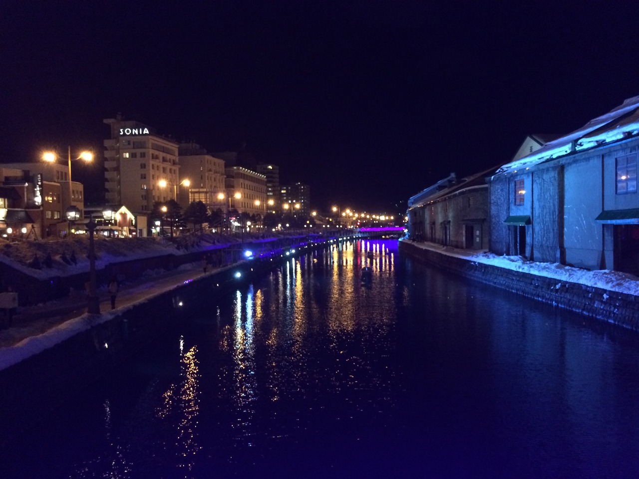 小樽運河が青色に染まる