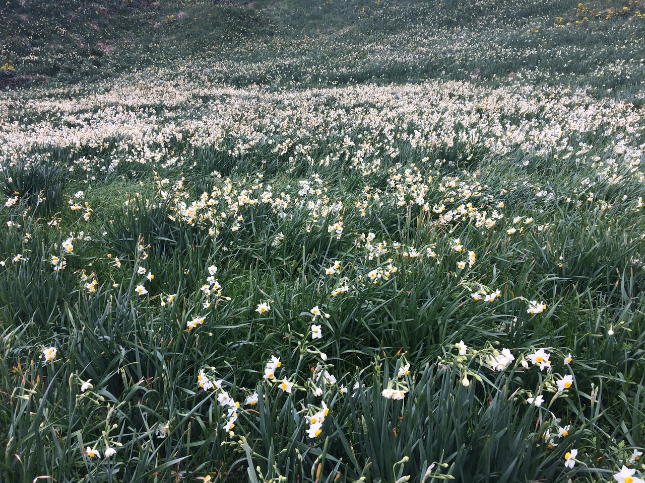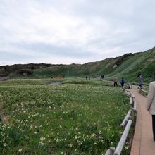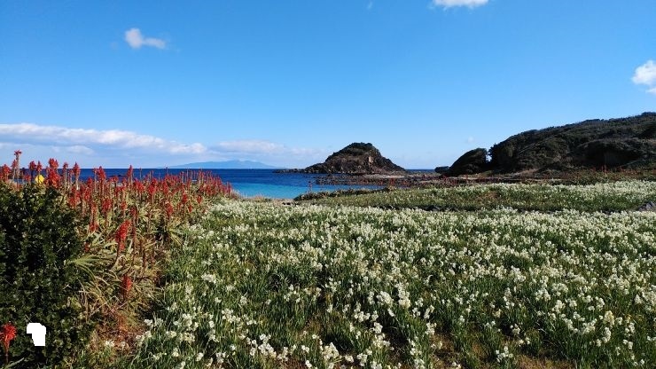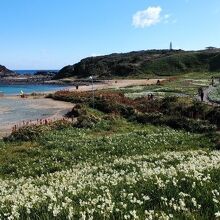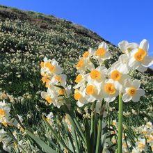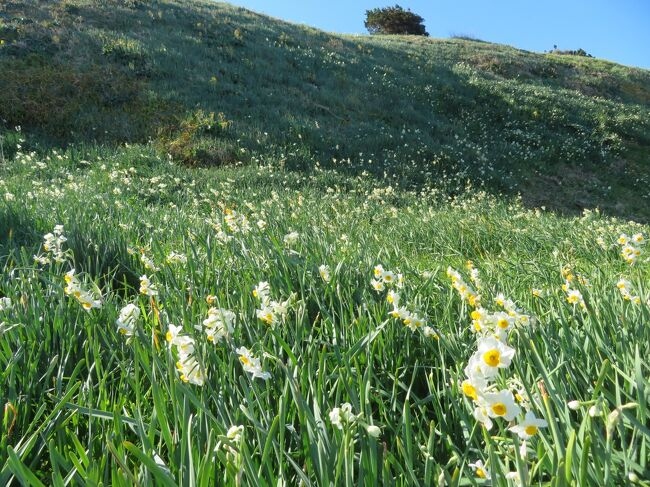 海岸の岬に咲くスイセンの群落がきれいだった。