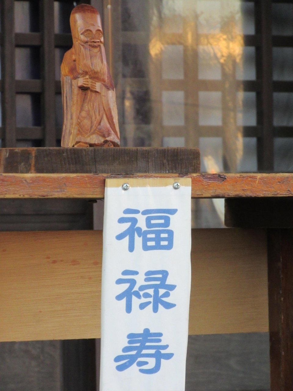 2015年1月初旬訪れましたら、鶴見七福神めぐりの期間中であり七福神の福禄寿像が御開帳されていました(拝殿)。スタンプラリーも同時開催されています(色紙100円)。