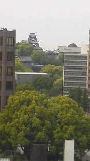 ガラス張りの休憩ところはいいですね・・熊本城のビュースポット。