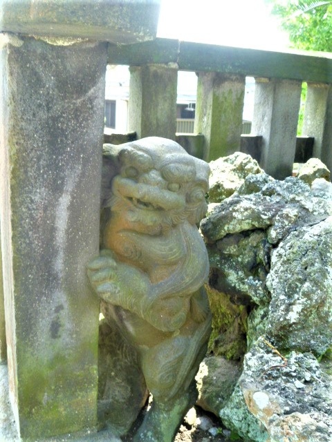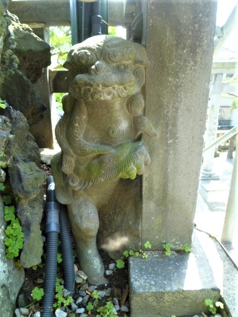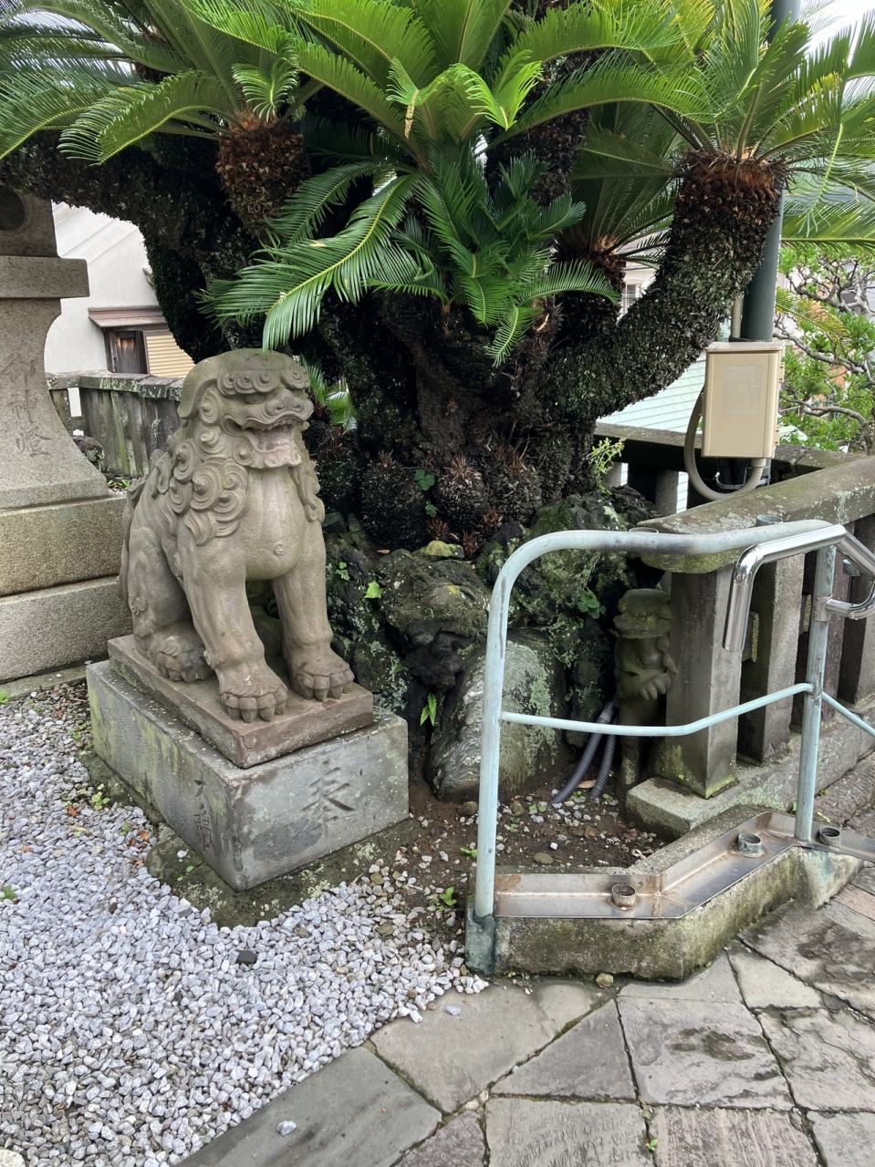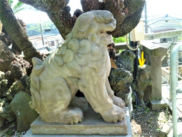 西)叶神社では父親狛犬と遊ぶ子供狛犬が!