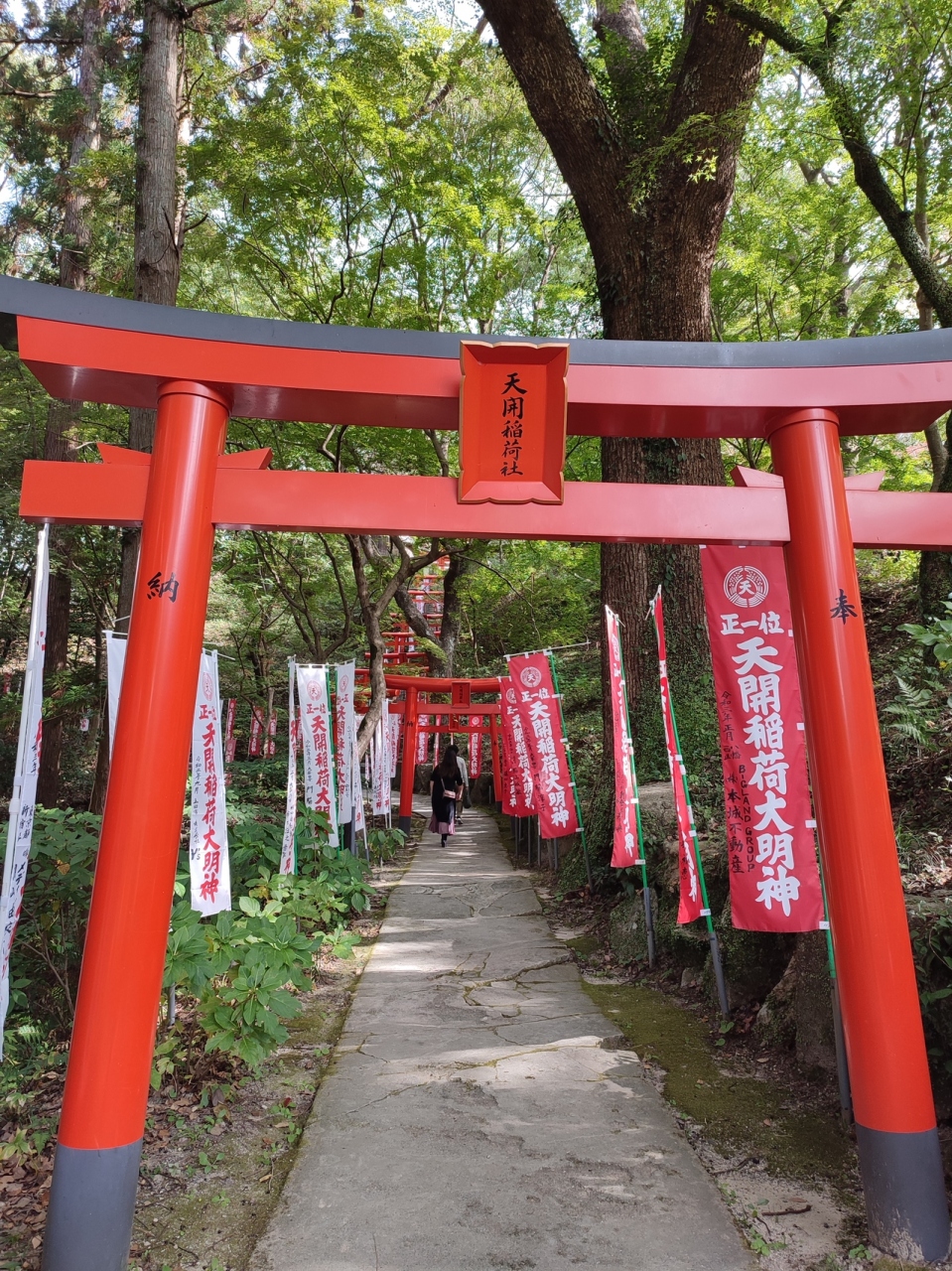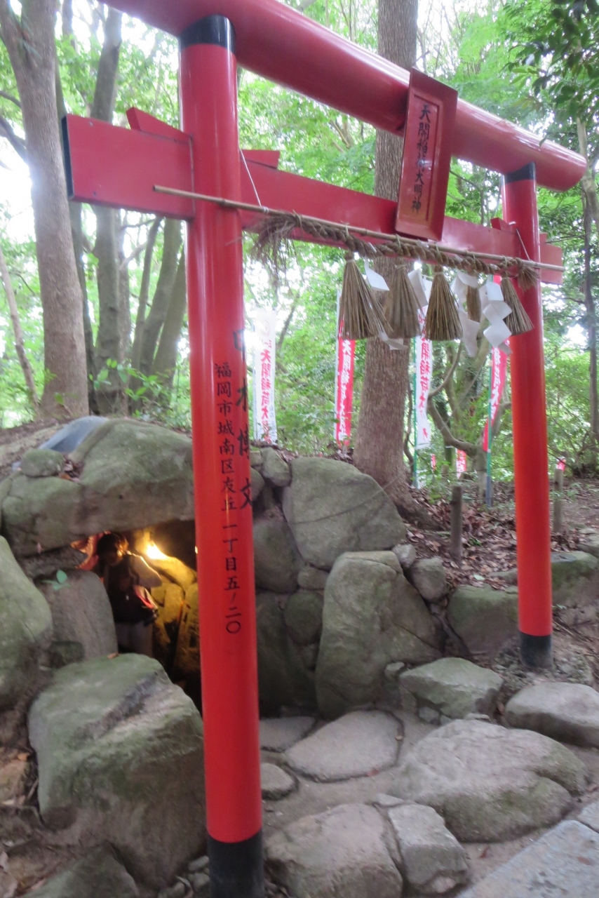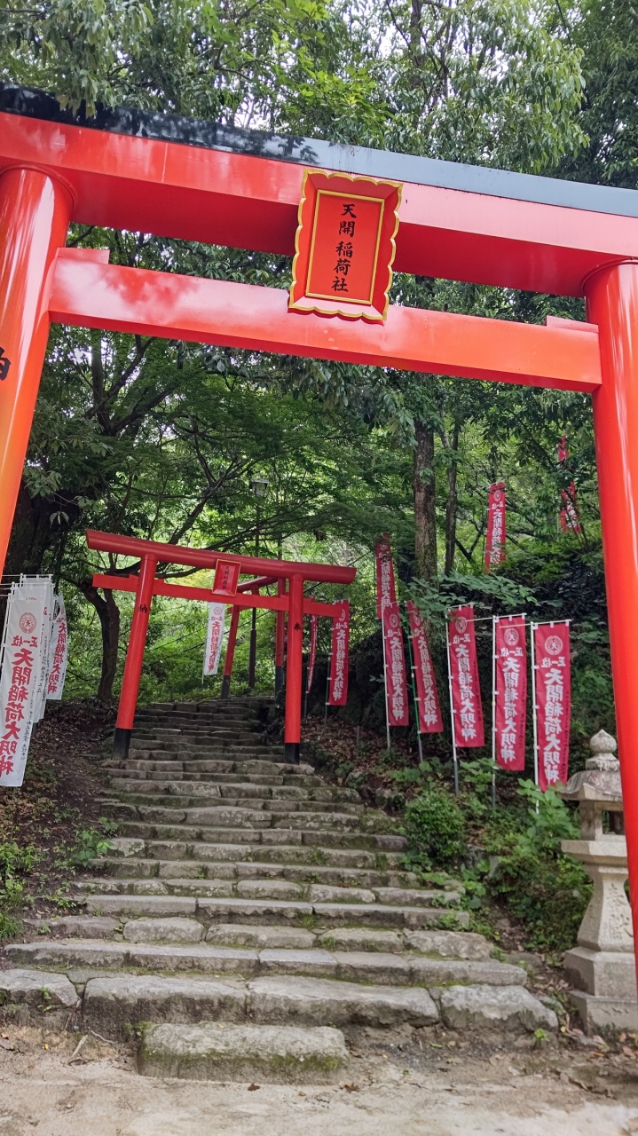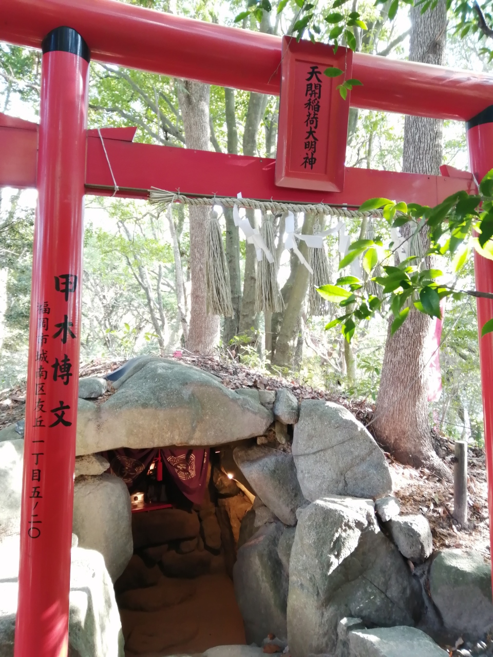 太宰府天満宮の境内一番奥にあるパワースポットです。九州最古の稲荷神社と言われる「天開稲荷」まで行ってみました。本殿横を抜け... 続きを読むて梅園を抜けます。有名なお石茶屋を通り過ぎると朱塗りの鳥居が見えてきます。お石茶屋の手前から少しずつ勾配が増します。山道を7~8分くらい進むと、朱塗りの鳥居が立ち並ぶ狭い石積みの階段が現れます。この階段が大変な方には左側から回り込む舗装道路もあります。急な階段を登り終えると天開稲荷神社本殿前にたどり着きます。参拝を終えてテント下で休憩をすると、心地よい風が汗をかいた身体に気持ちよいです。本殿の左側に朱塗りの鳥居と石積みの階段がありますので、登るとすぐに「奥の院」に着きます。せっかくならここまでお参りしてください。「奥の院」は古墳の石室のような感じで、中には数人くらいしか入れません。ここからは石積みの階段は危険なので、舗装道路を下りて太宰府天満宮まで戻ります。 閉じる