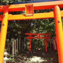 神社へと続く坂道には朱塗りの鳥居がありました。
