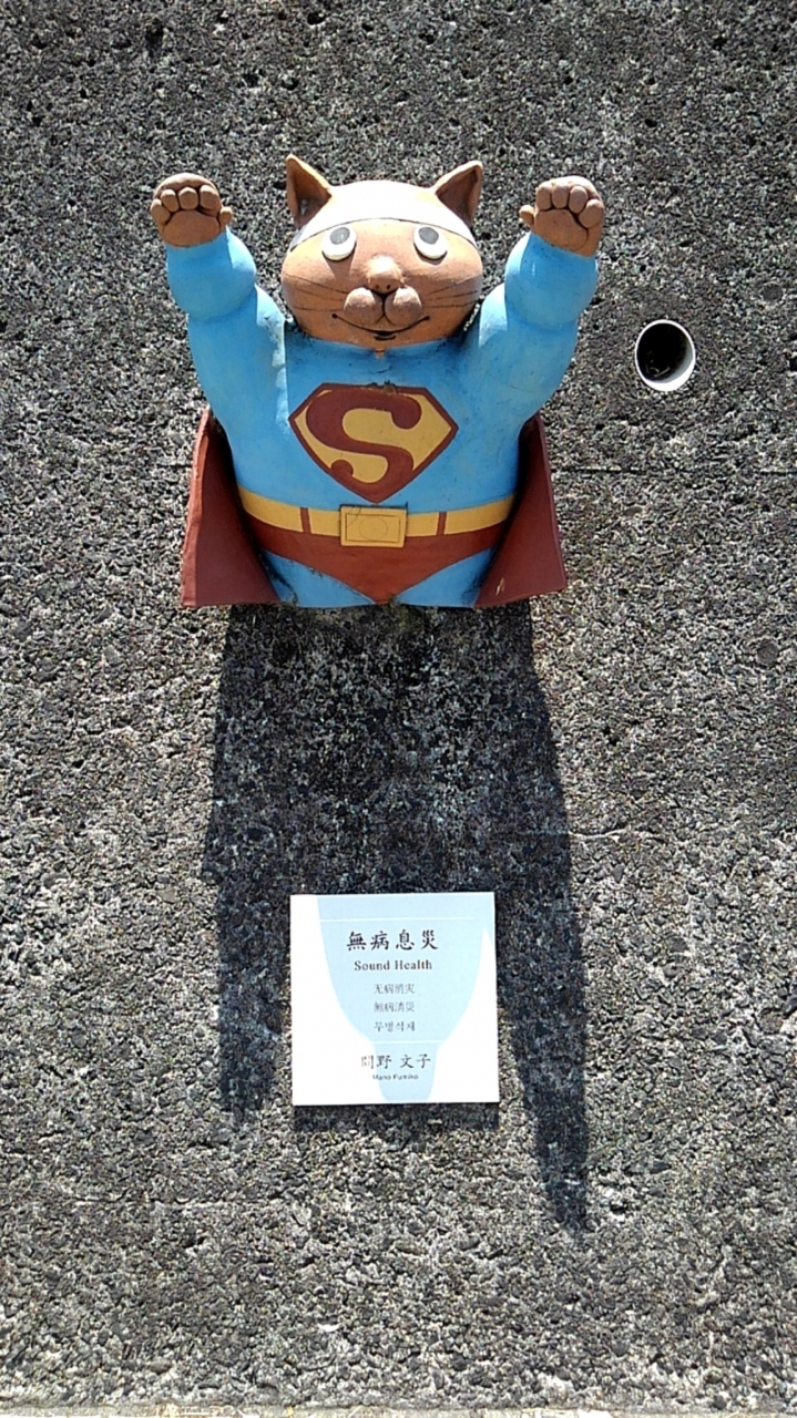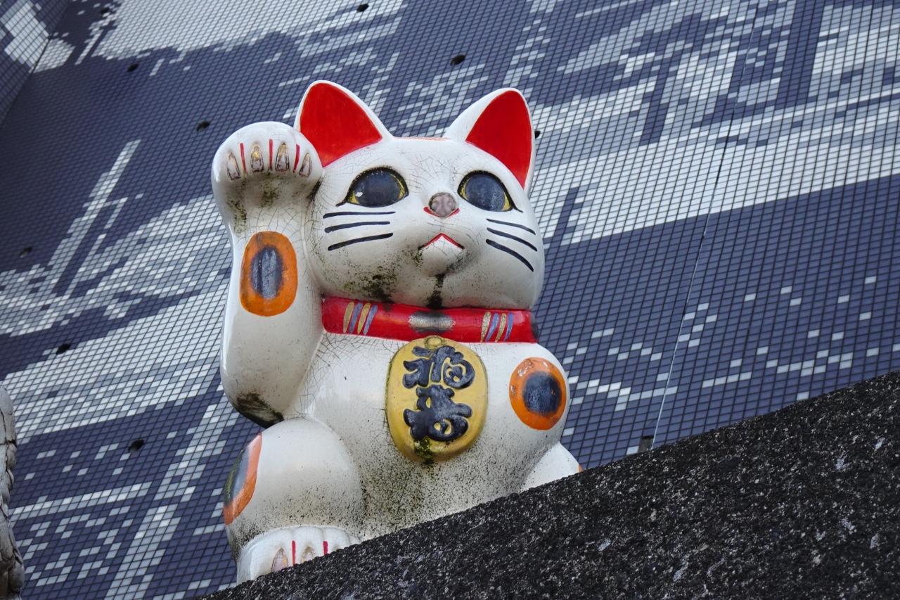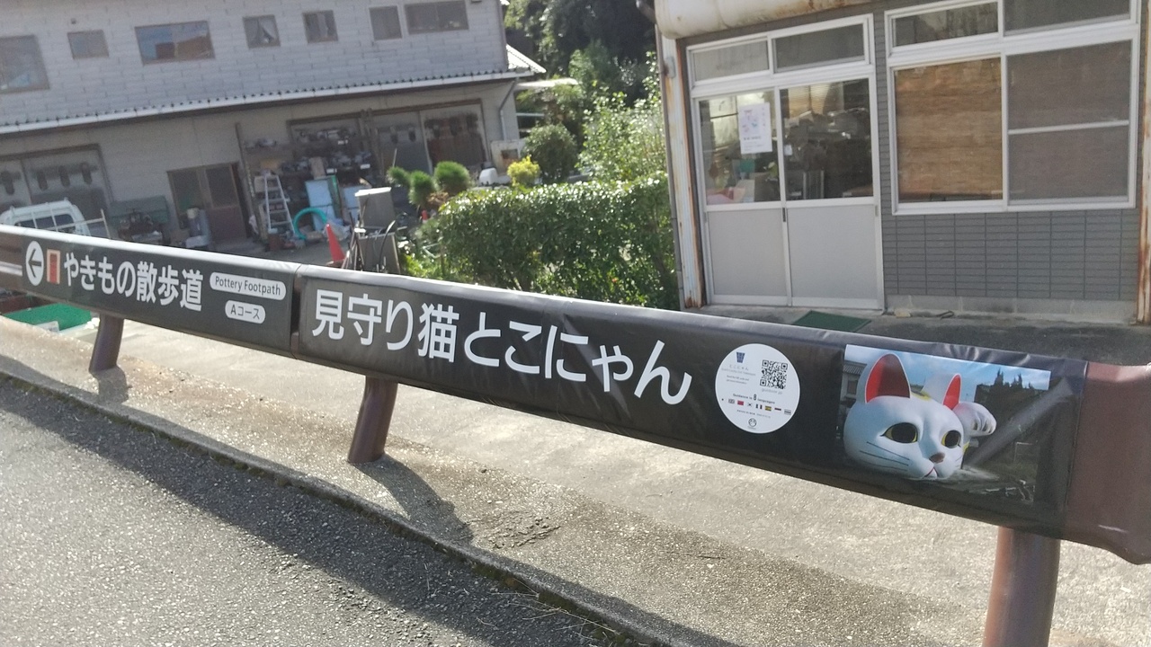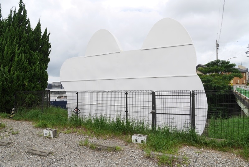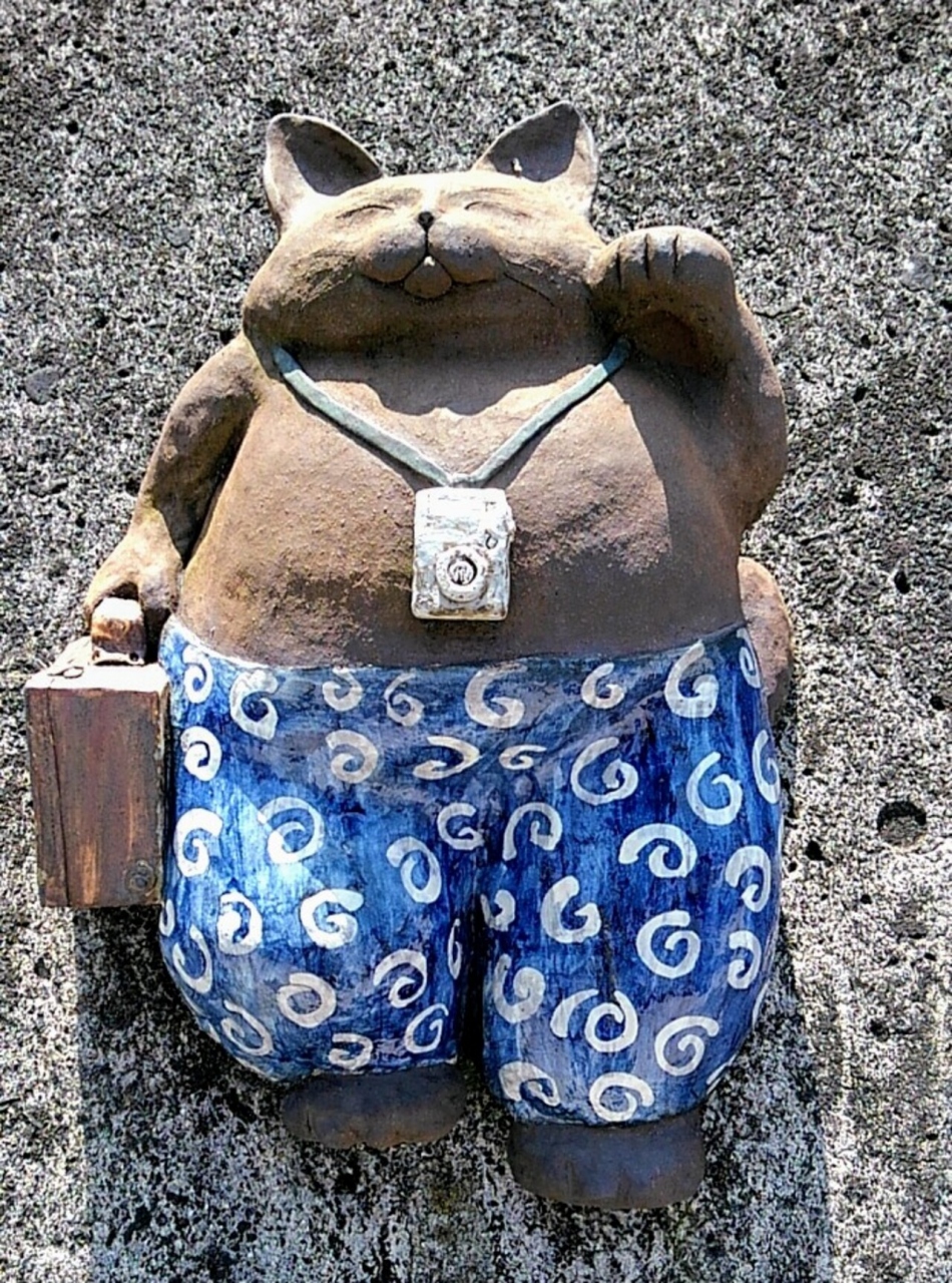 歩道橋の上にいる常滑名物の招き猫。ややハリボテ感有(笑)